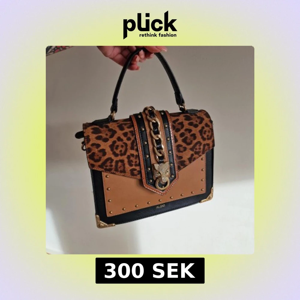 Snygg handväska från Aldo med leopardmönster och detaljer i svart och brunt.