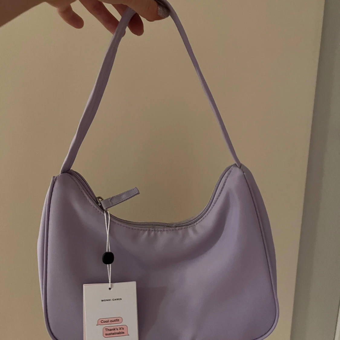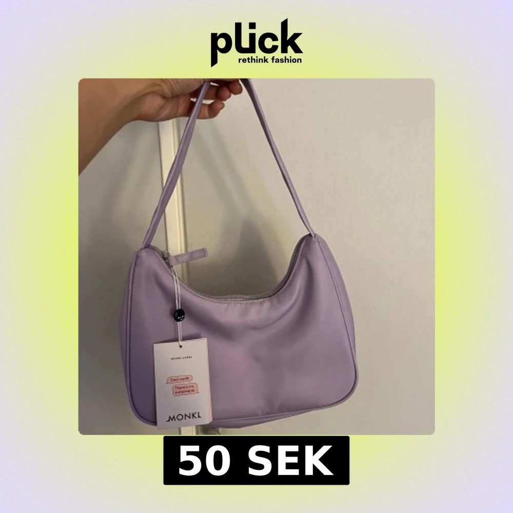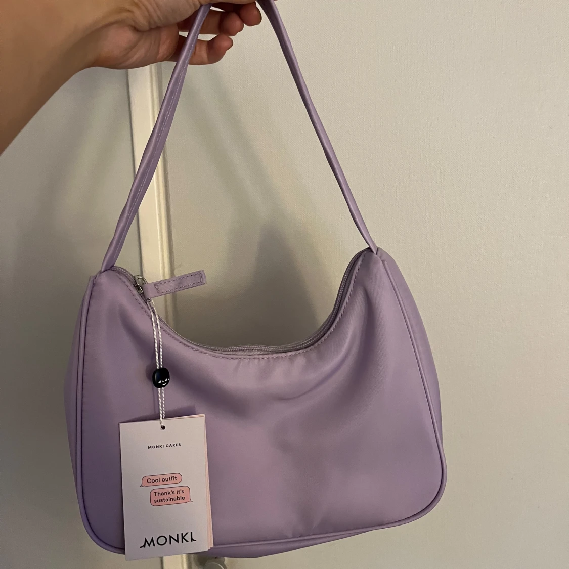Säljer en lila axelväska från Monki. Aldrig använd med prislapp kvar. Köptes för 180 kr