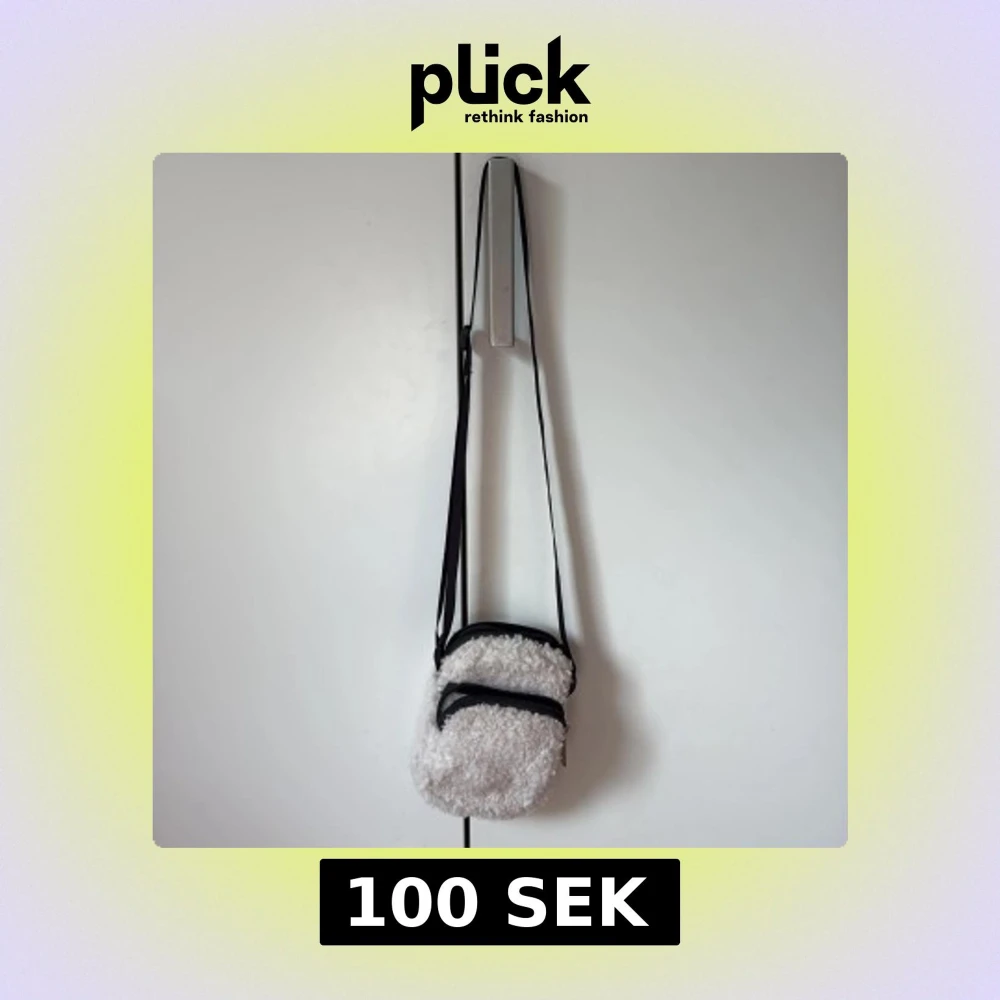 Supermysig vit axelväska i teddy-material med två fack och svarta dragkedjor. Perfekt storlek för mobilen och småsaker, och har en justerbar svart axelrem. Väskan har en rundad form och ger en cool vibe till din outfit.