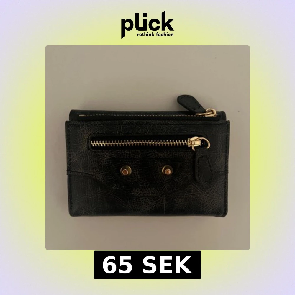 Snygg svart plånbok i skinn med dragkedja framtill. Insidan har flera kortfack och ett fönster för ID eller foto. Helt ny, aldrig använd.