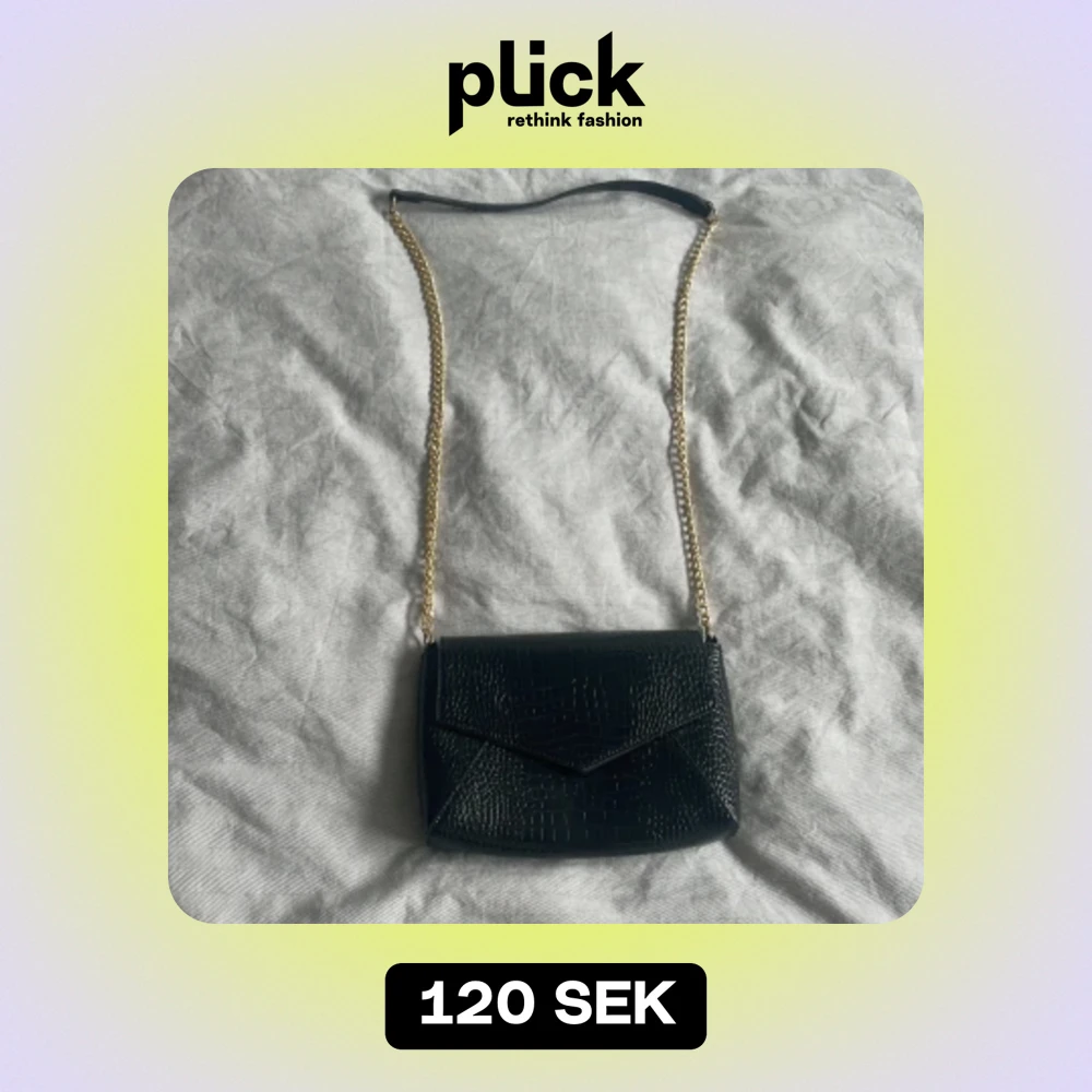 Säljer en snygg svart kuvertväska från Anna Field. Väskan har en elegant krokodilpräglad yta och en stilren design. Den har en guldfärgad kedjerem. Väskan är i nyskick och redo att användas!