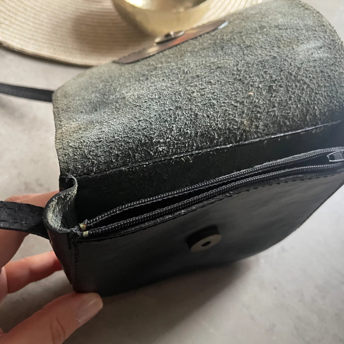 Stilren svart axelväska från danska märket Belsac i äkta skinn. Väskan har ett klassiskt lock med magnetknäppning och ett huvudfack med dragkedja. Perfekt storlek för det viktigaste och enkel att bära med lång axelrem. Inga tecken på användning.
