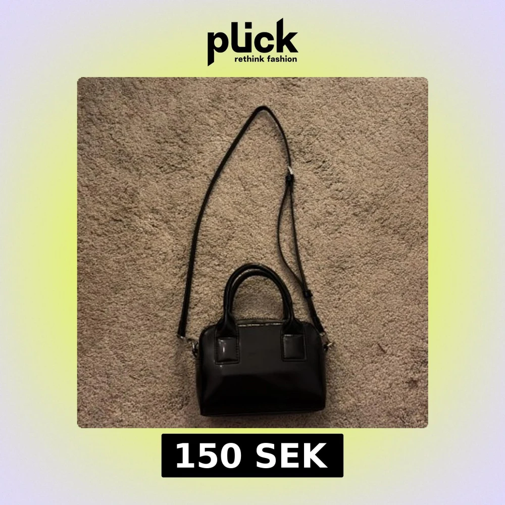 En liten axelväska, man kan ta bort dom långa banden så de blir en handväska, köp på Åhléns för 300. Andvänd en gång.