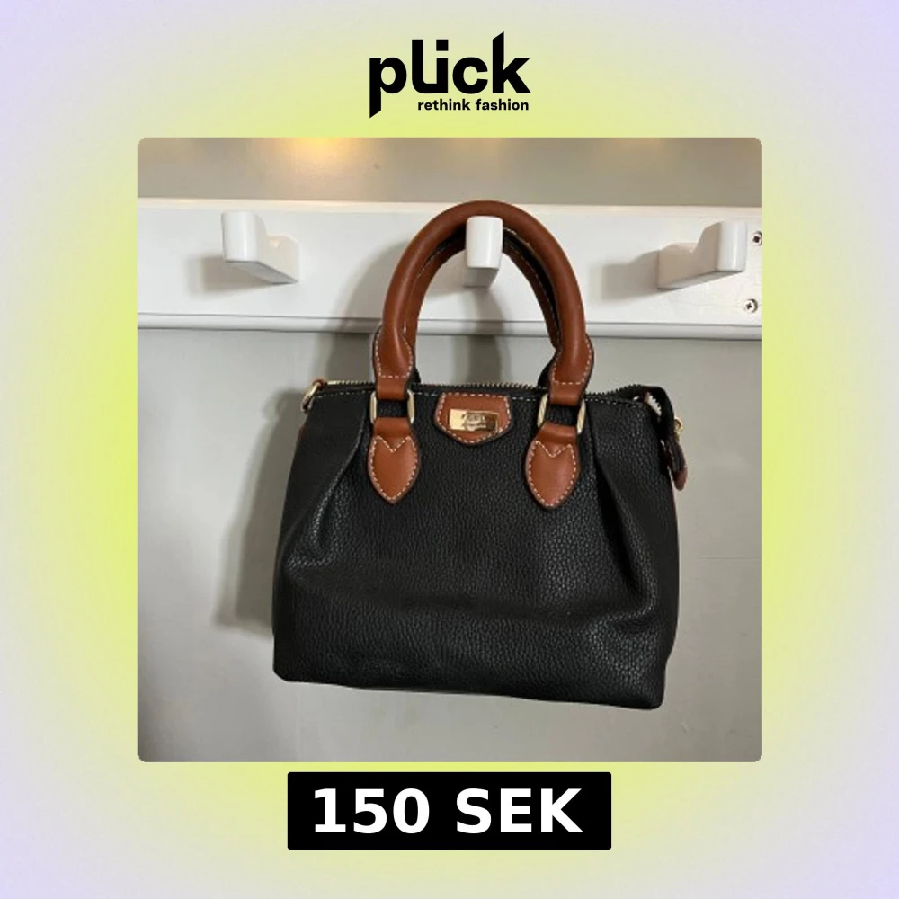 Snygg svart handväska från Feel i skinn med bruna handtag och detaljer. Väskan har guldfärgad dragkedja och ett blommigt innerfoder. Perfekt liten väska för det viktigaste.