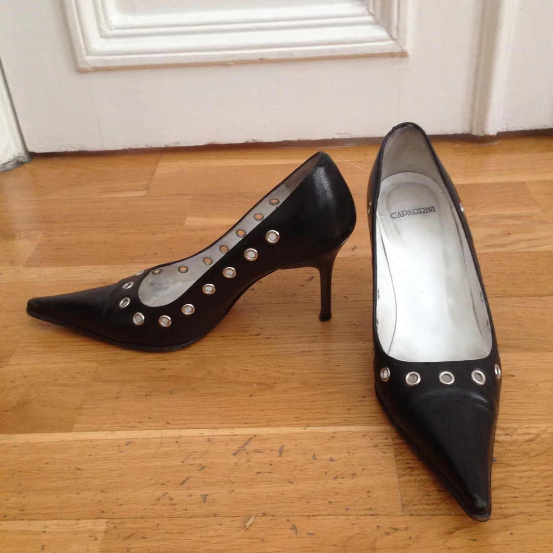 Svart liten skinnväska i med silverfärgade öljetter säljes för 500kr. Jag har även ett par klackskor i samma stil om någon vill ha både och för 1000kr. Jag kan skicka eller träffas i centrala Stockholm. Både väskan och skorna är i fint skick.