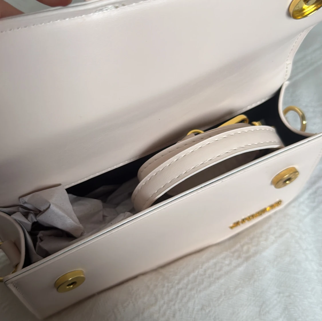 Säljer en stilren ljusbeige/offwhite Jacquemus hand/axelremsväska. Axelremsband hittas i väskan🌟