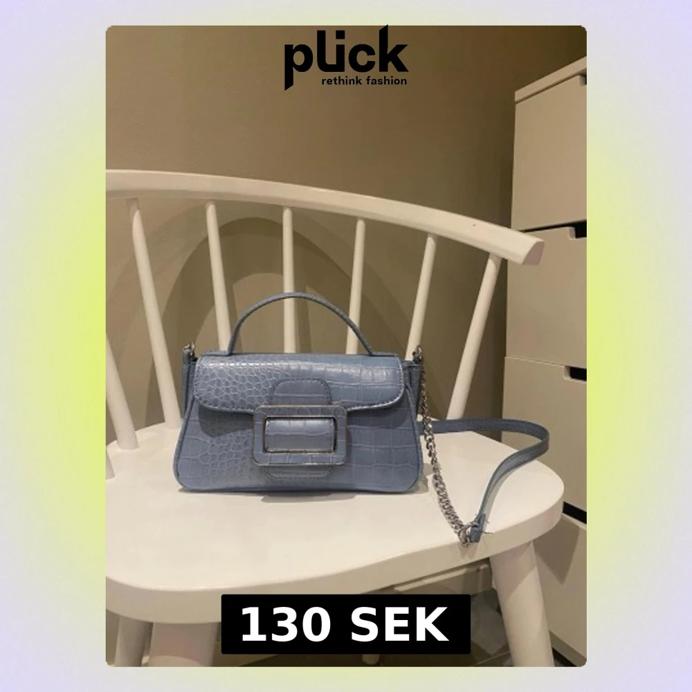 Snygg ljusblå axelväska från Zara med krokopräglat mönster och silverfärgad kedja. Väskan har ett stilrent spänne framtill, axelrem och ett rymligt fack med innerficka.
