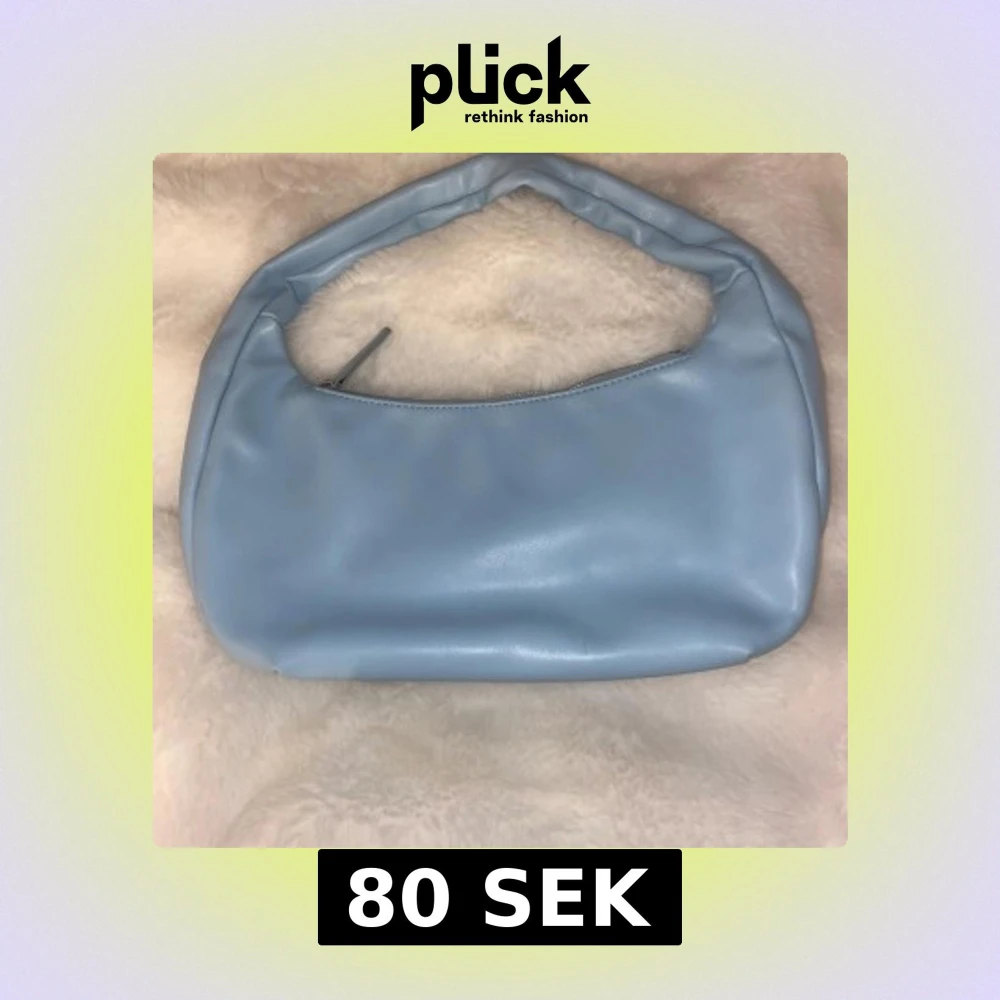 Säljer en stilren ljusblå axelväska med mjuk, rundad form och enkel design. Väskan har ett kort handtag och stängs med dragkedja upptill. Perfekt för dig som vill ha en clean och trendig look.