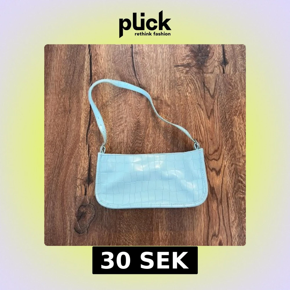 Säljer en stilren ljusblå axelväska med rutmönstrad yta. Väskan har en justerbar axelrem och en enkel, modern design som passar perfekt till olika outfits.