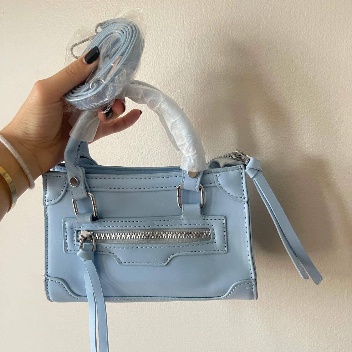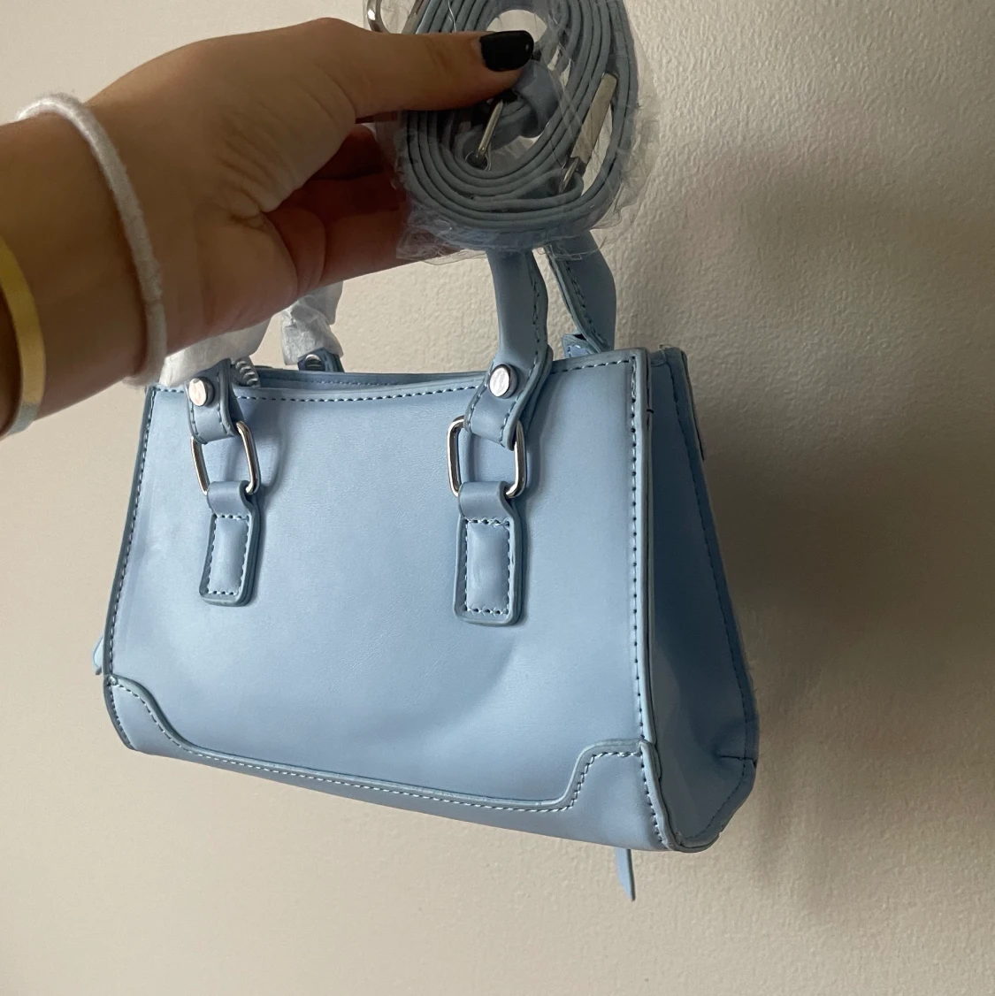 Liten ljusblå söt väska ifrån SHEIN, aldrig använd och den har nog legat i min garderob i ett år. Man får också med ett långt band, säljes pga kommer ej till användning