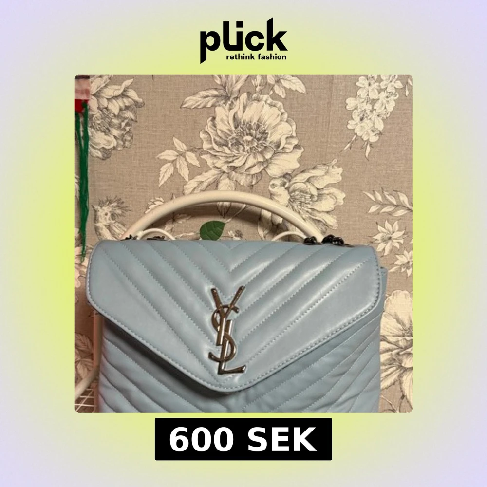 Ljusblå quiltad YSL axelväska