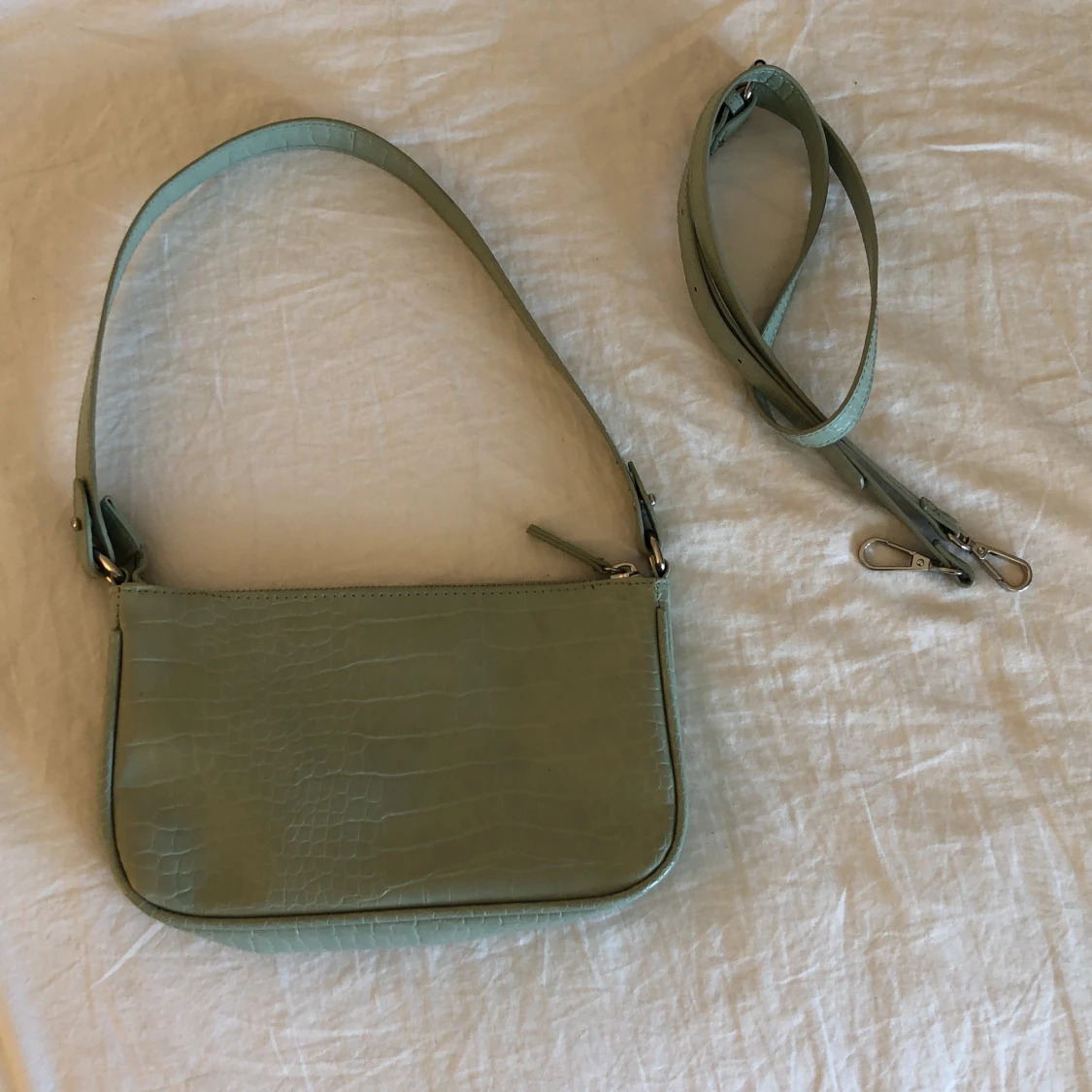Säljer nu denna jättefina ljusgröna väskan som man kan ha med ett kort eller långt band (man får såklart med båda).🥰 Den har en innerficka och är i väldigt bra skick. Köptes för 199kr och säljer för 70kr + frakt🤩