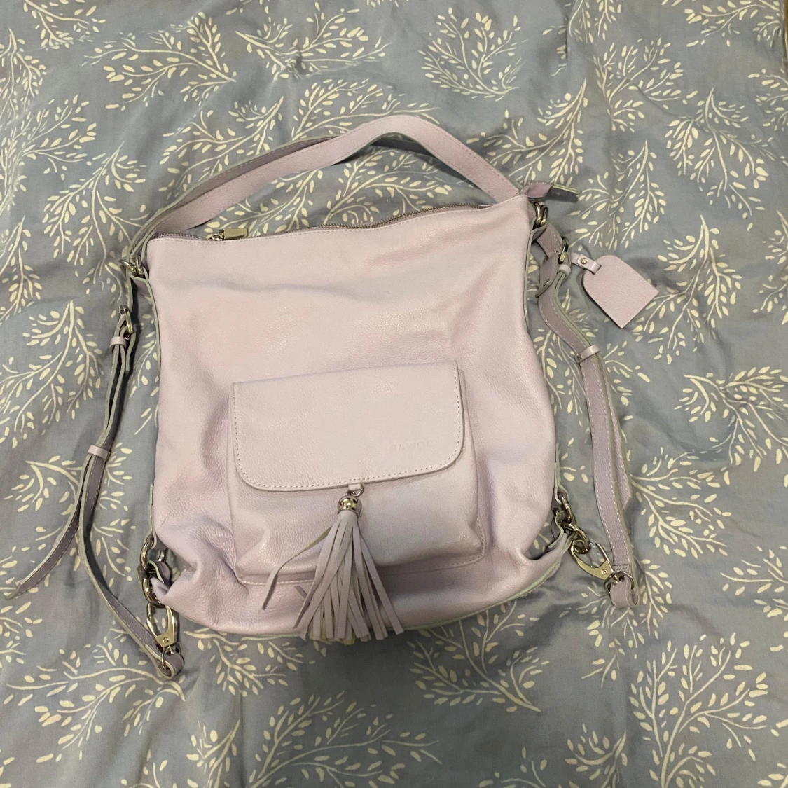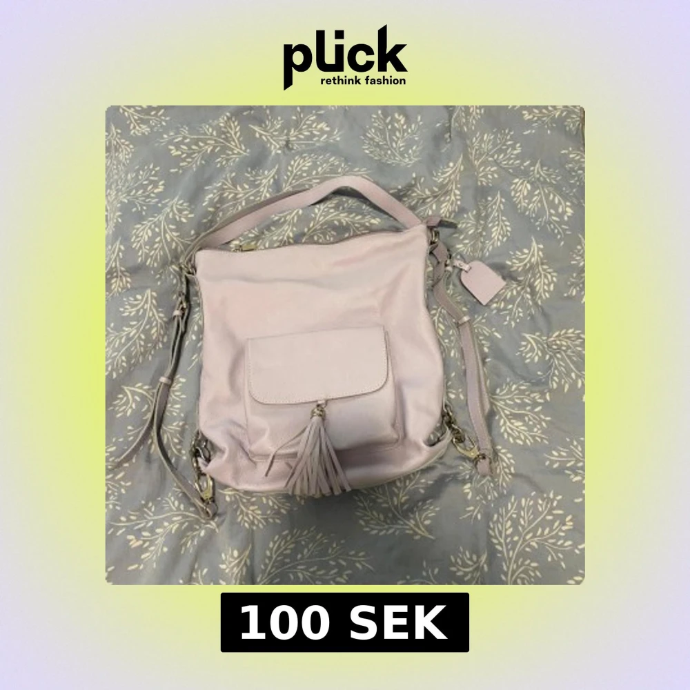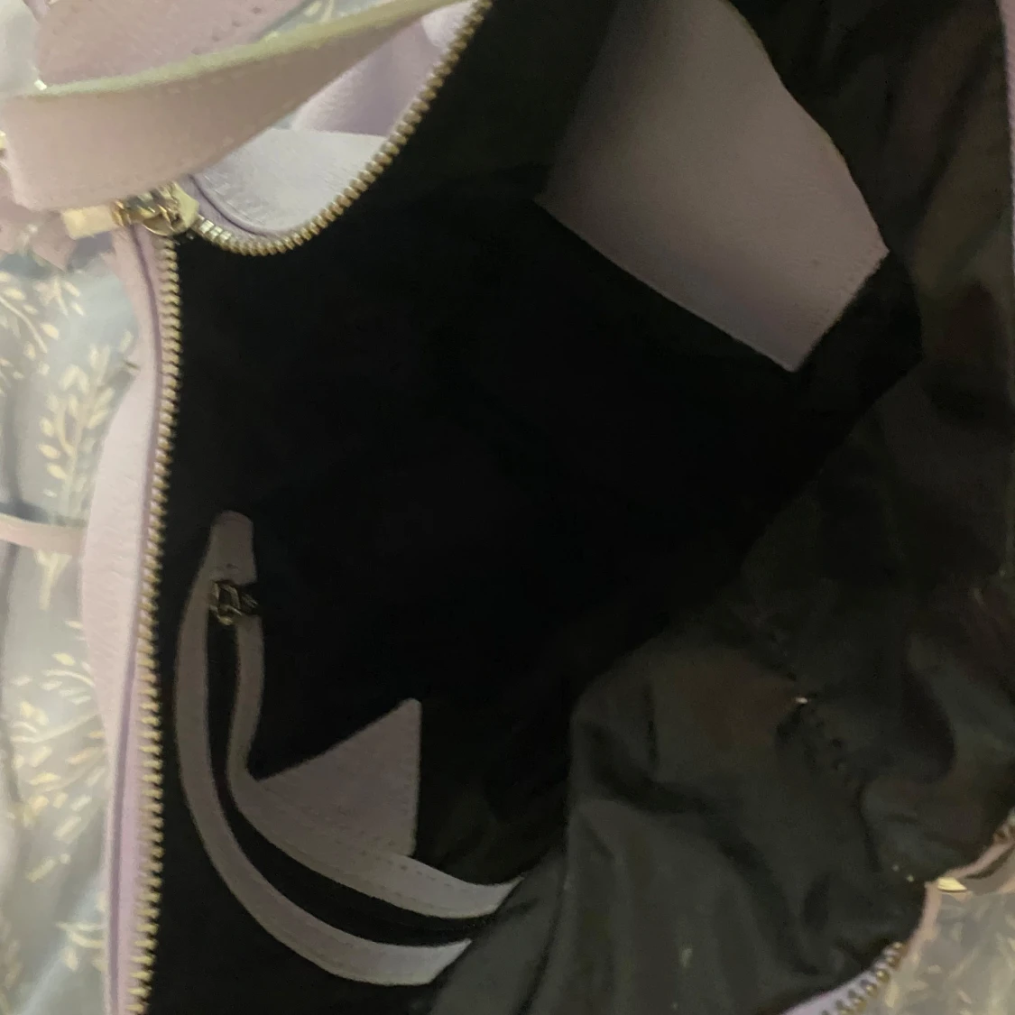 Säljer en ljuslila axelväska i skinn med justerbar rem och snygg tofsdetalj framtill. Väskan har ett ytterfack med lock och dragkedja upptill, samt ett rymligt innerfack. Perfekt storlek för att få plats med allt du behöver till vardags.