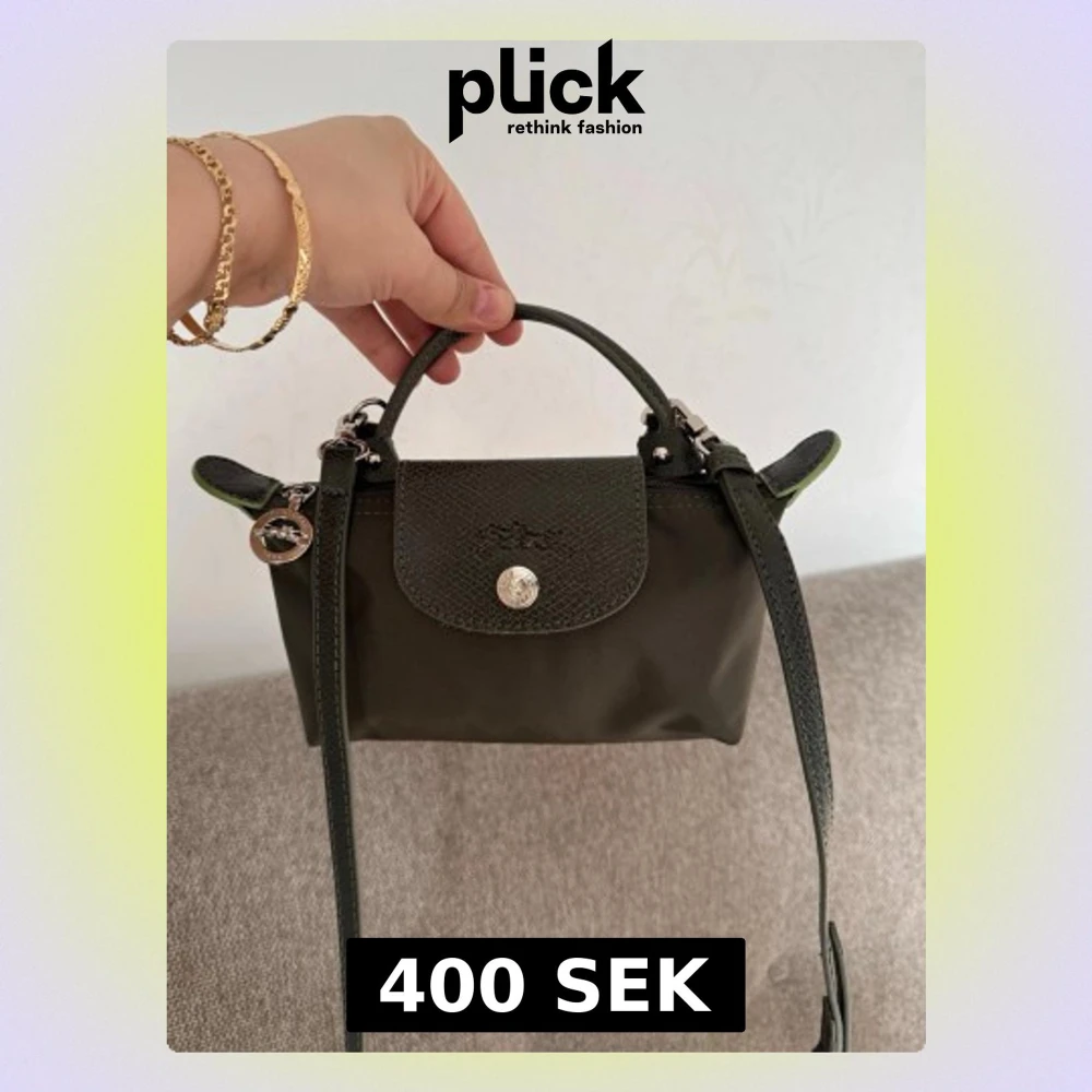 LONGCHAMP väska i fin grön färg med silverdetaljer.