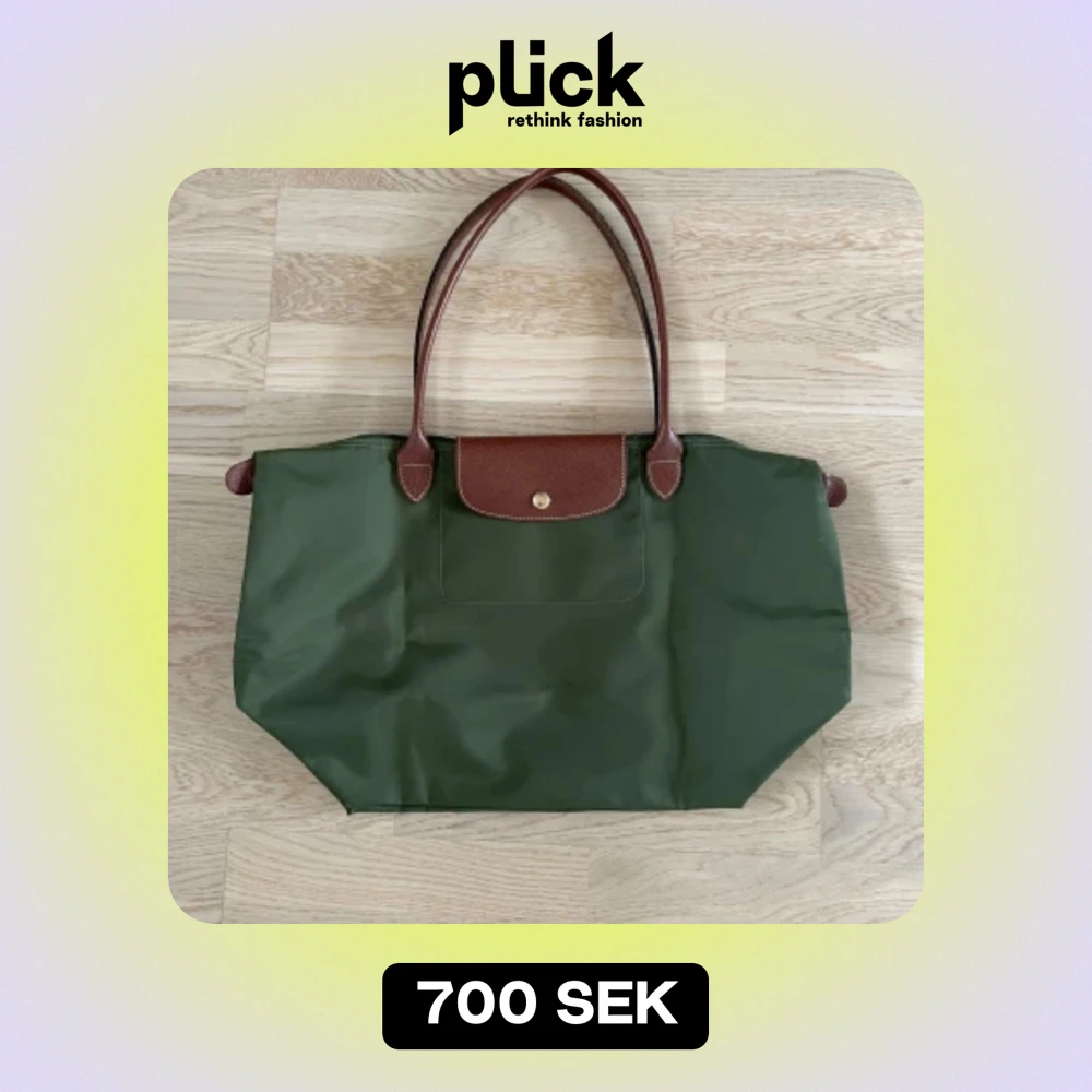 Äkta Longchamp väska i modellen Le Pliage Original i storlek M. Äldre modell som inte längre tillverkas. Slitage enligt bilder, ”kantstött”. Lädret är i mycket fint skick. Kontakta för fler bilder. Nypris: 1 499 kr