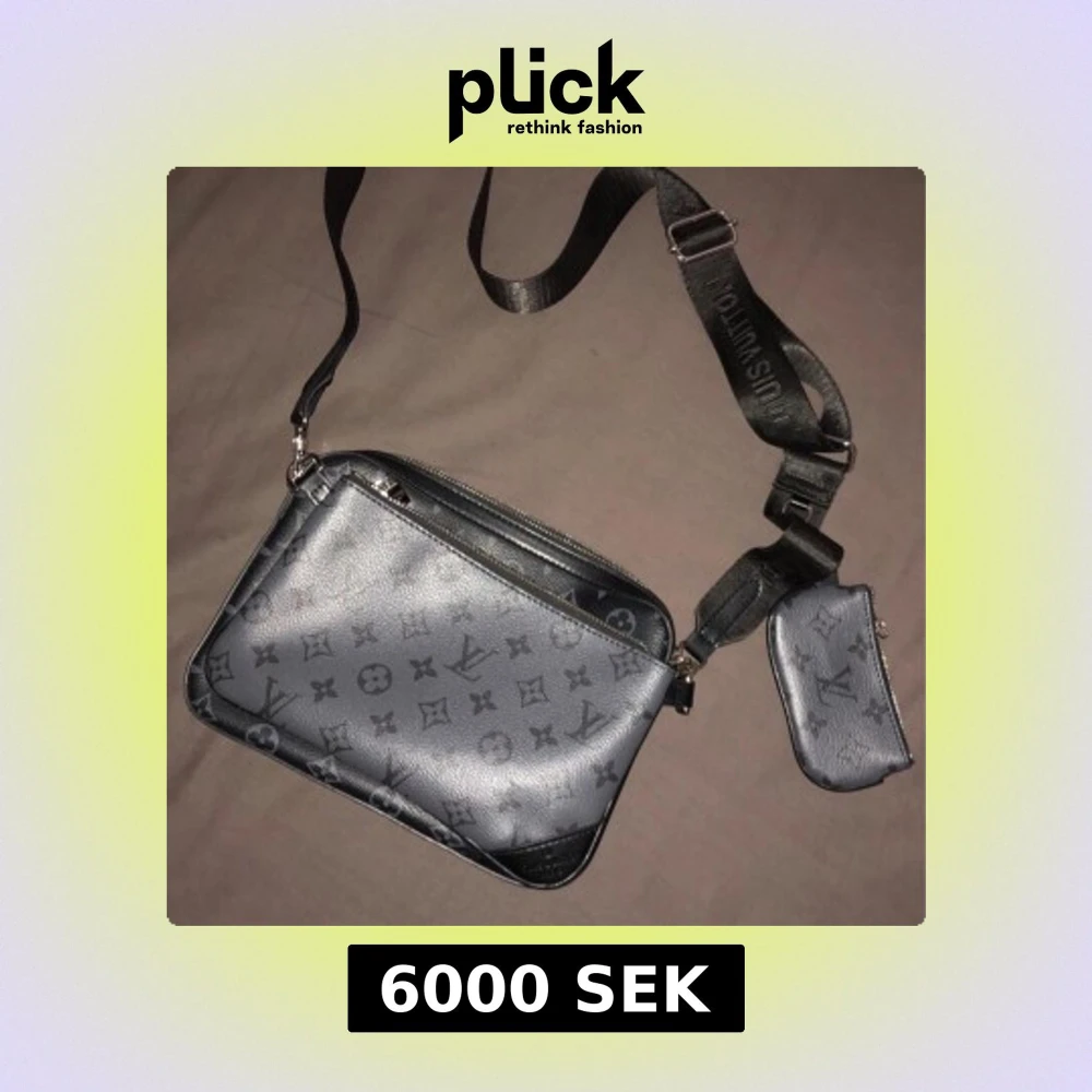 Snygg axelväska från Louis Vuitton i svart och grått med klassiskt monogrammönster. Väskan har justerbar axelrem med logga, dragkedja och en liten avtagbar plånbok. Tillverkad i skinn med silverfärgade detaljer. Perfekt för dig som vill ha en stilren och trendig väska.