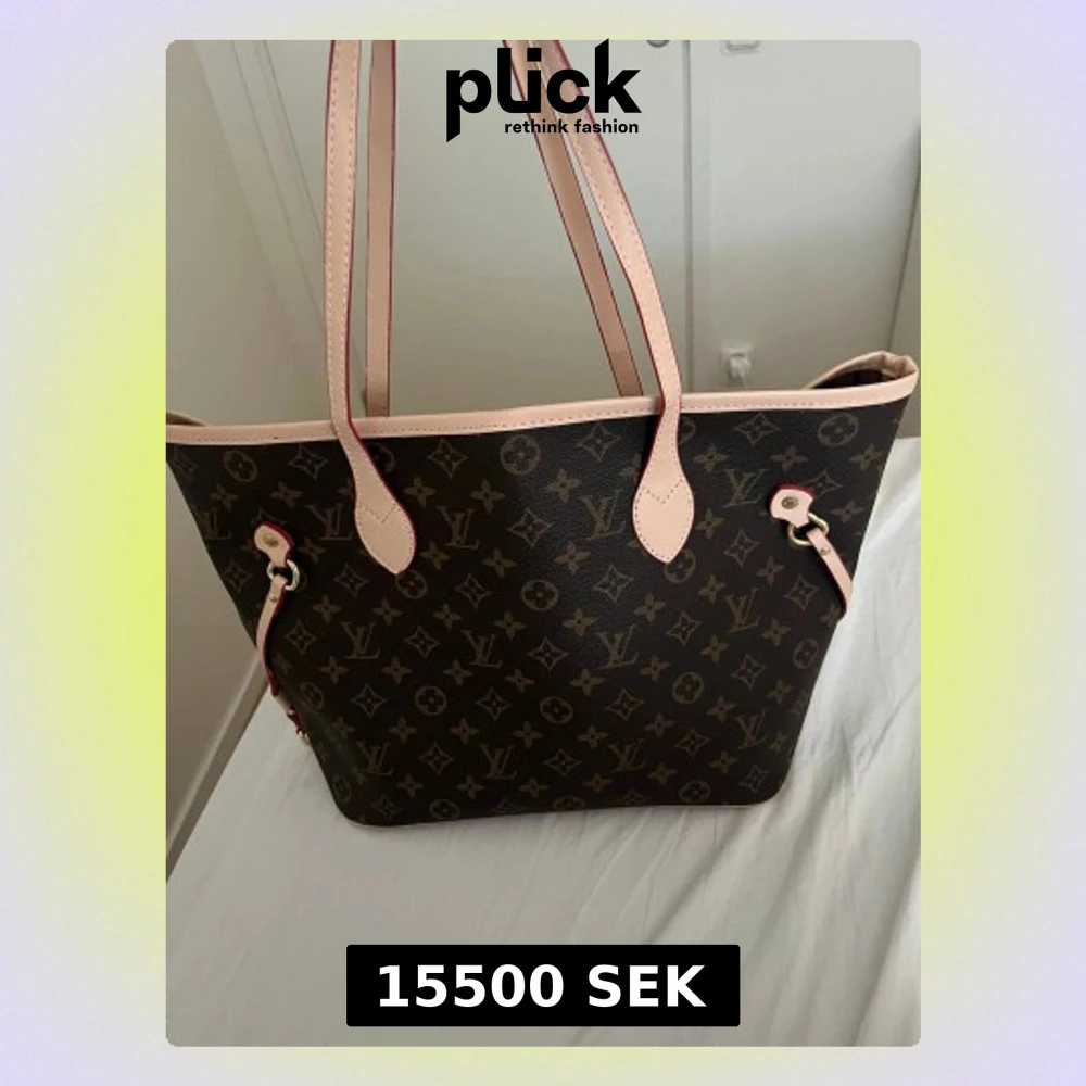 Säljer en klassisk Louis Vuitton Neverfull med ikoniskt monogrammönster i brunt och beige. Väskan har ljusa skinnhandtag, guldiga metalldetaljer och randigt innerfoder. Perfekt storlek för att få plats med allt du behöver och snygg att bära på axeln.
