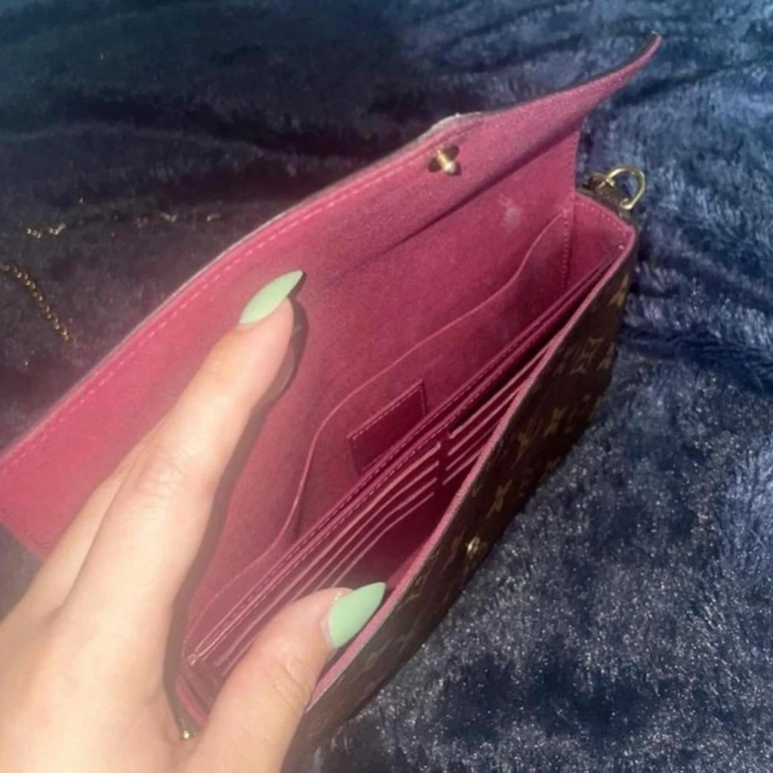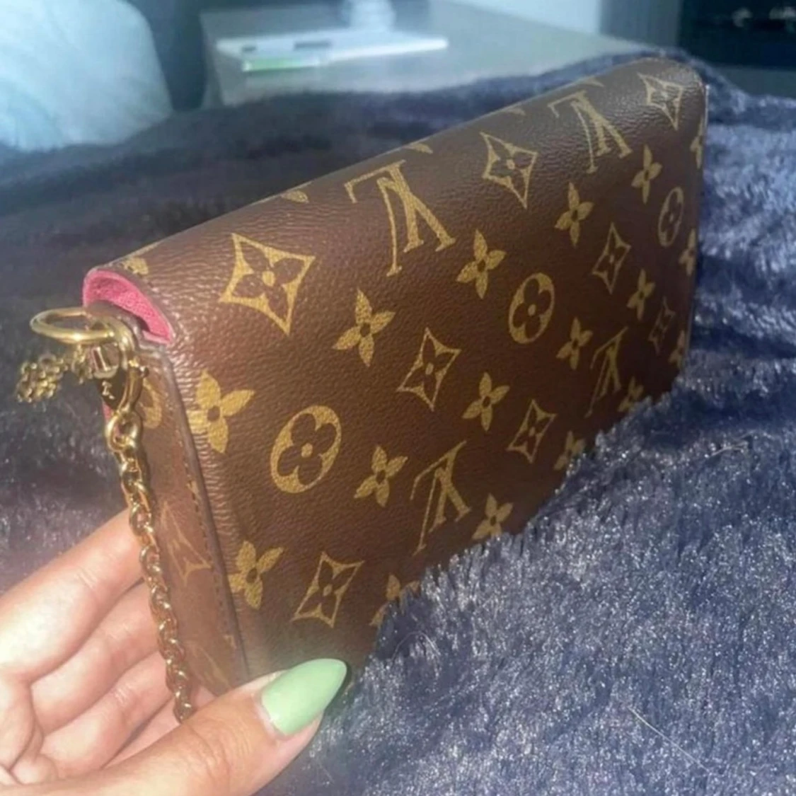 LV väska i modellen Felicie Pochette, monogram design i läder. Väskan har en inbyggd inneficka, medföljer en platt avtagbar ficka med 8st korthållare. Färgen är i fin skick & väskan är sparsamt använd, enda defekten är att knappen kan gå upp ibland.