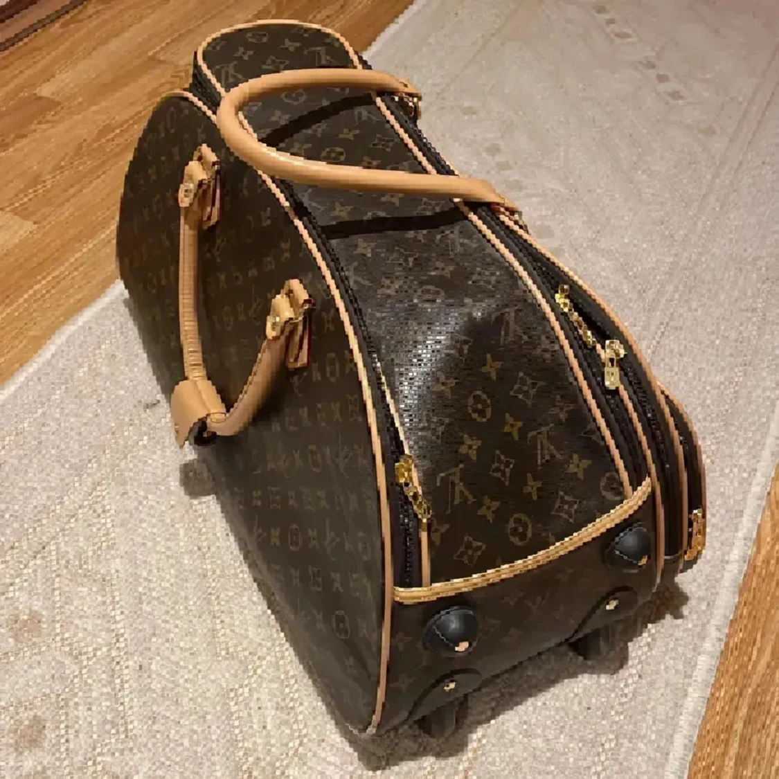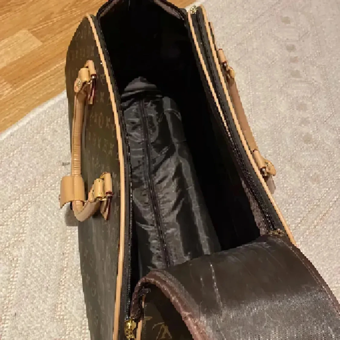 Snygg brun resväska med klassiskt monogrammönster och ljusa skinnhandtag. Väskan har flera fack, dragkedjor i guld och detaljer i beige. Perfekt för dig som vill resa med stil och ha plats för allt du behöver. Riktig lyxig och nyskick❤️Inget kvitto därav billigt pris🙂Priset kan diskuteras