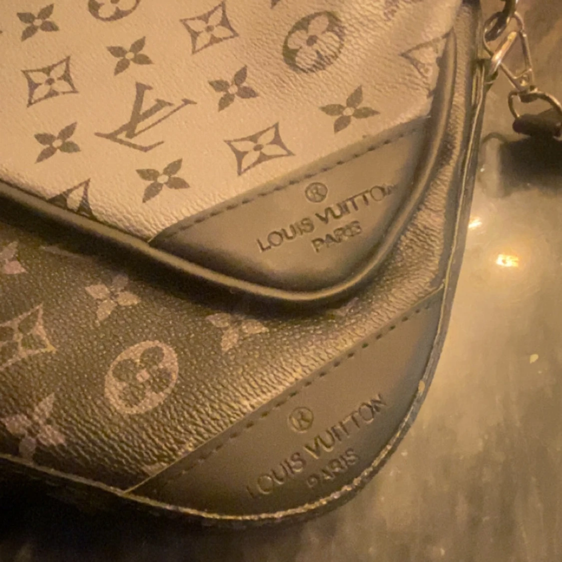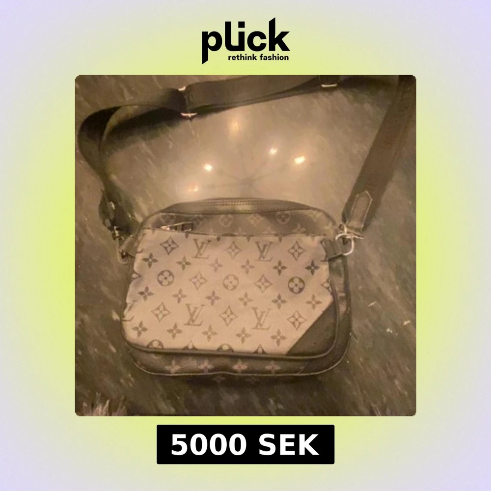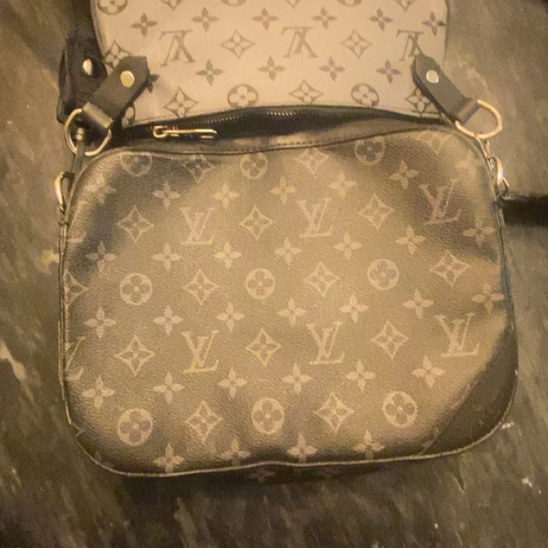 Snygg axelväska från Louis Vuitton med klassiskt monogrammönster i svart och grå. Väskan har justerbar axelrem, två fack med dragkedja och detaljer i skinn. Perfekt storlek för det viktigaste och ikonisk design med LV-logga och blommor.