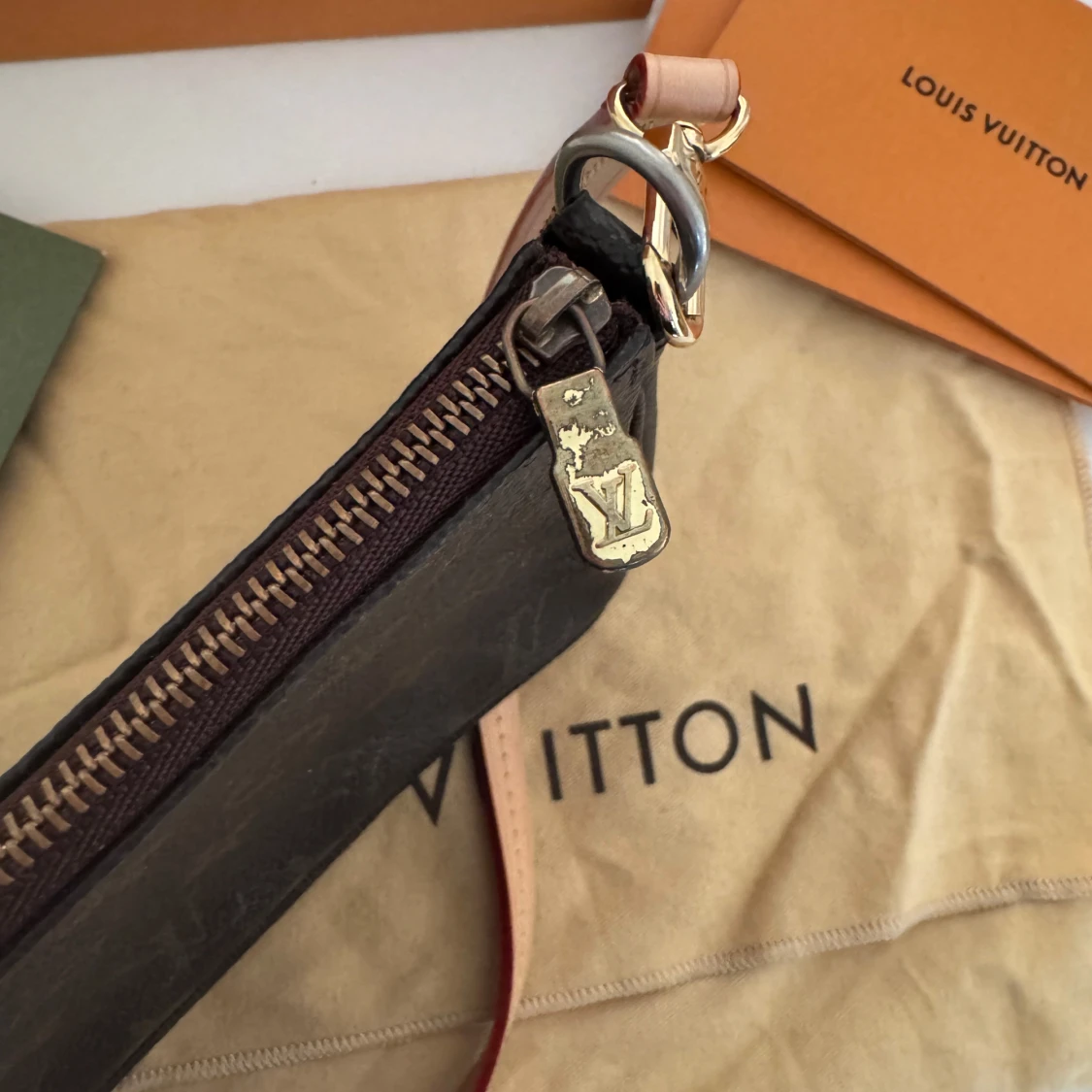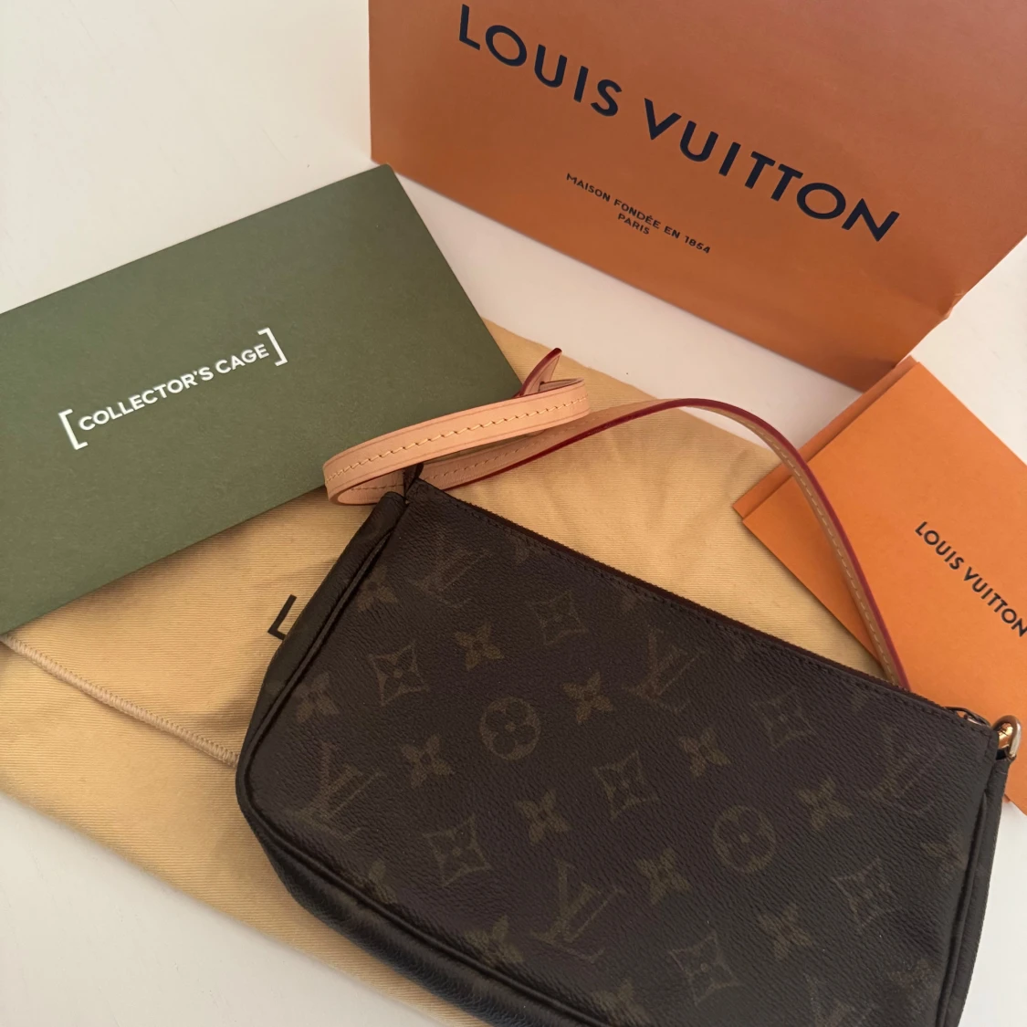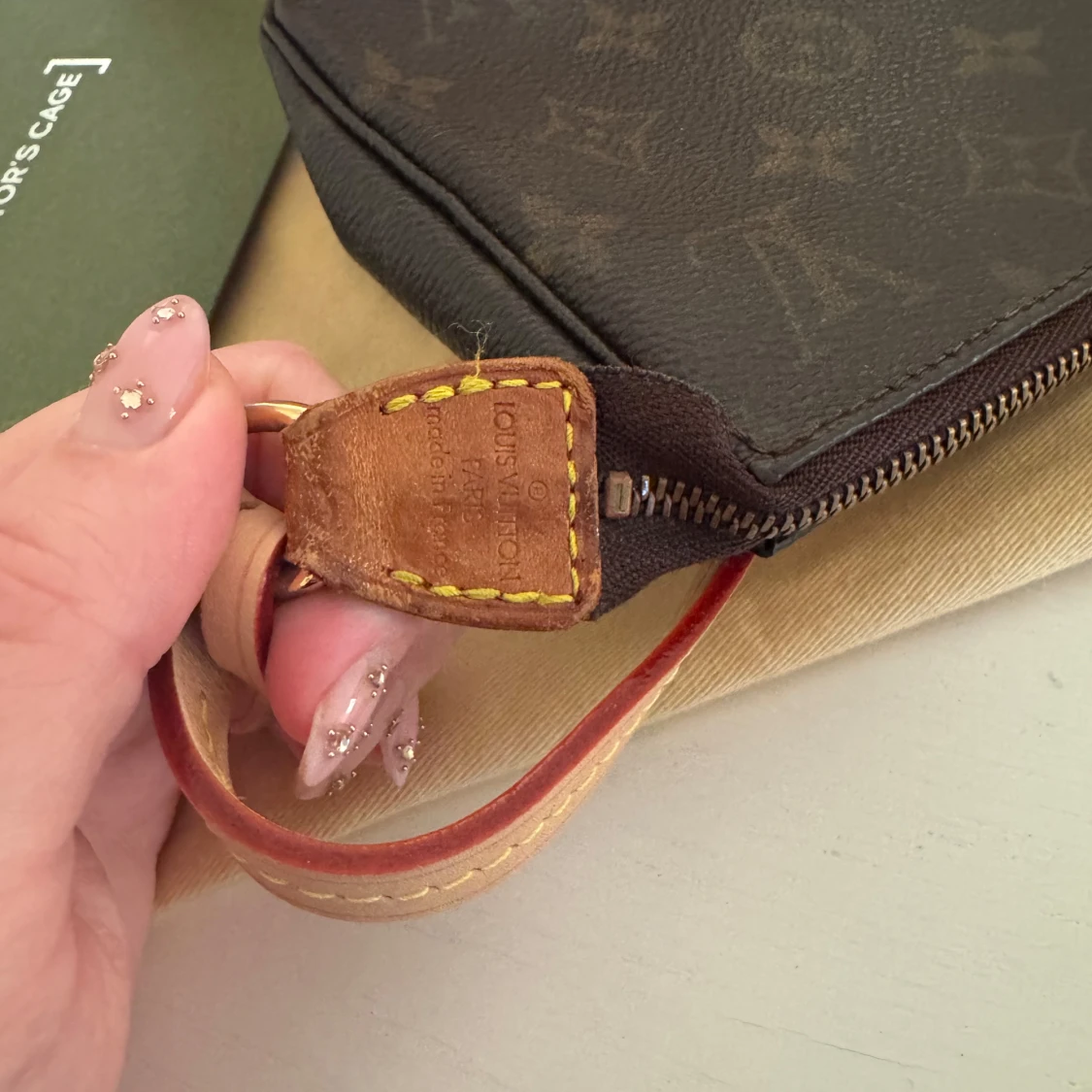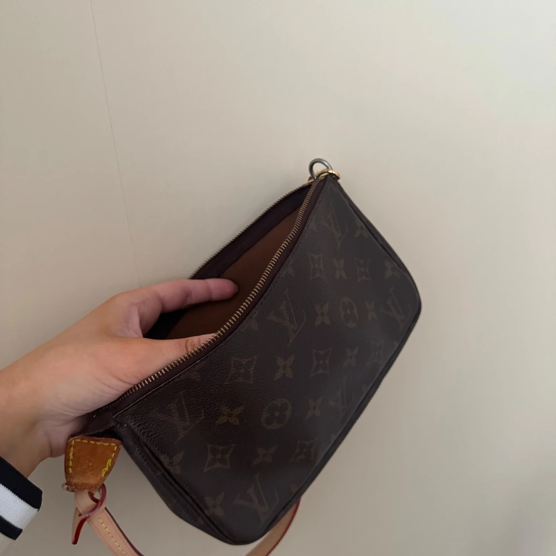 PRIS KAN DISKUTERAS, 5600kr VID SNABB AFFÄR ❤️ Säljer min fina pochette accessoires från Louis Vuitton. Den är vintage och köpt från Collectors Cage, certifikat medföljer, har även kvar lapparna från väskan🌷Bra vintage skick, finns inga hål, fläckar eller liknande men finns tecken på slitage, se bilder. Köpt ett nytt axelband från LV butiken i Stockholm, kvitto finns. Axelbandet är lite längre (samma som på de nya modellerna) och går jättebra att ha på axeln!