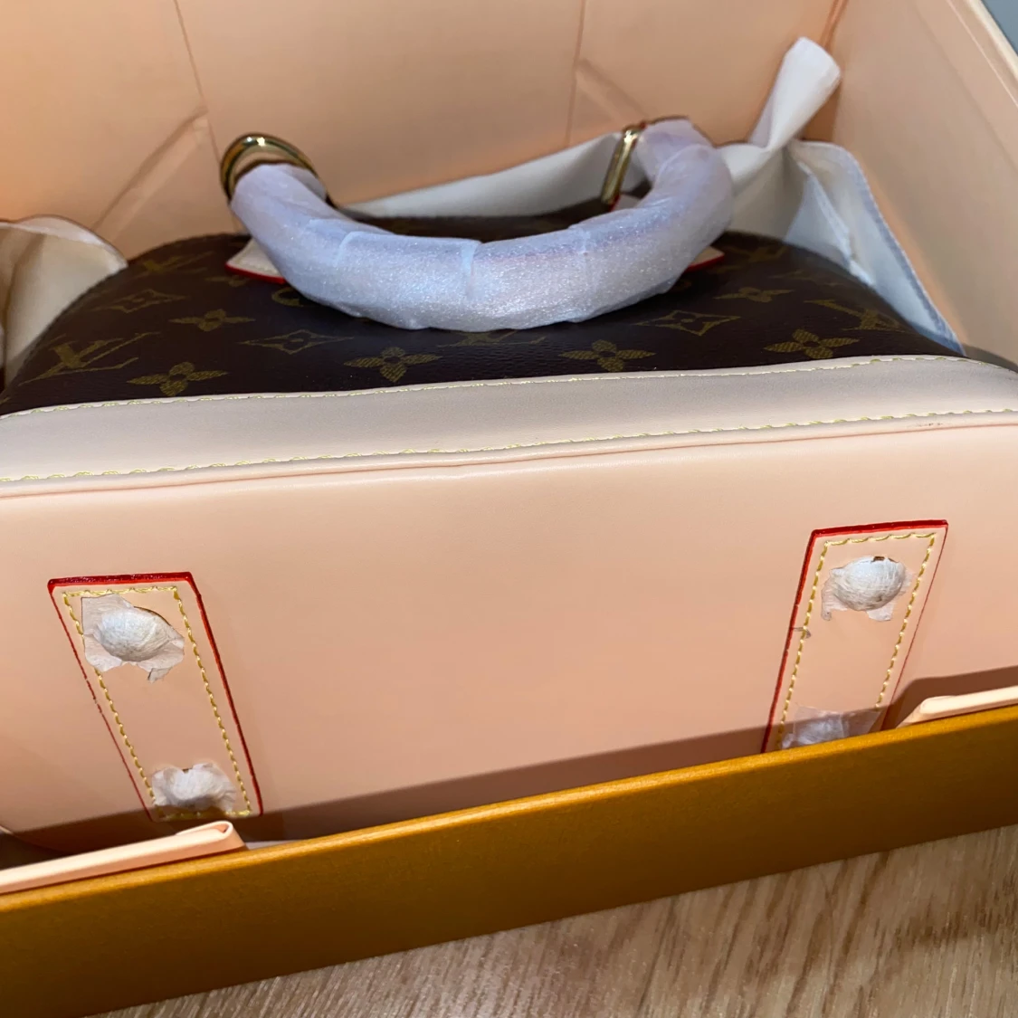 Säljer en ikonisk handväska från Louis Vuitton i klassiskt monogrammönster. Väskan är brun med beiga detaljer och guldfärgade metalldelar. Tillverkad i skinn med rundad form och två handtag. Perfekt för dig som vill ha en lyxig och tidlös accessoar❤️