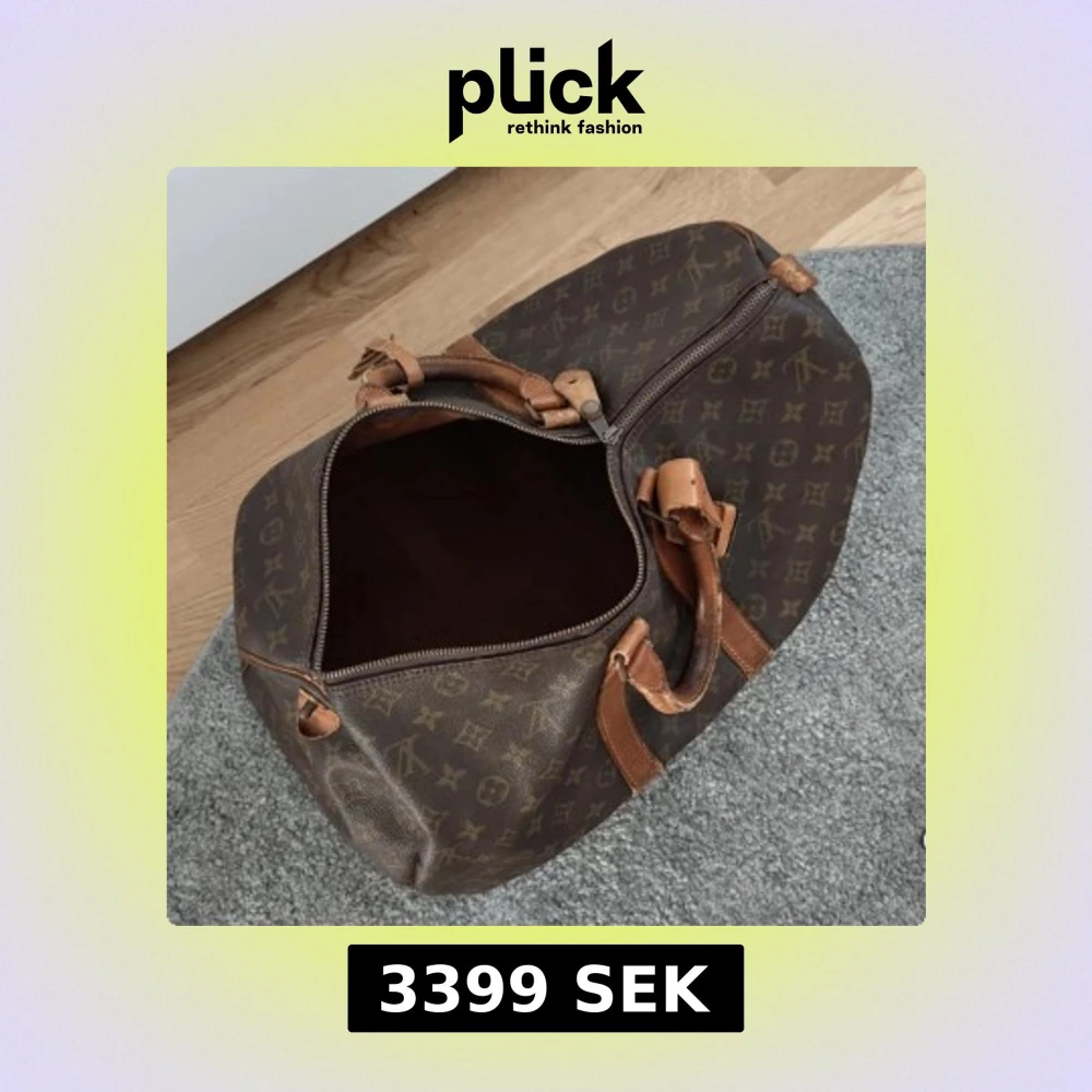 Säljer en klassisk brun Louis Vuitton Keepall axelväska med monogrammönster och detaljer i ljust skinn. Väskan har dubbla handtag och dragkedja upptill. Perfekt storlek för weekendresor och rymmer mycket.