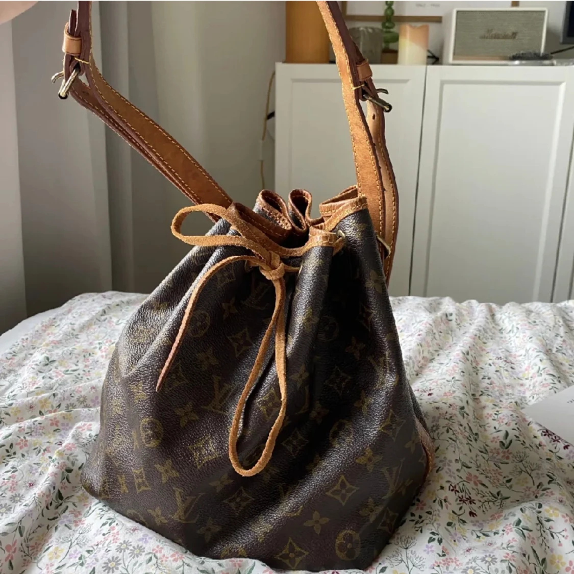 Säljer nu min fina Louis Vuitton väska i modellen petit noe 💖 köpt begagnad men från vintage bar från förra ägaren, vattenfläckar i botten därav priset. Äktighetsbevis och stämplar finns. PM Vid frågor eller fler bilder 🌟👛