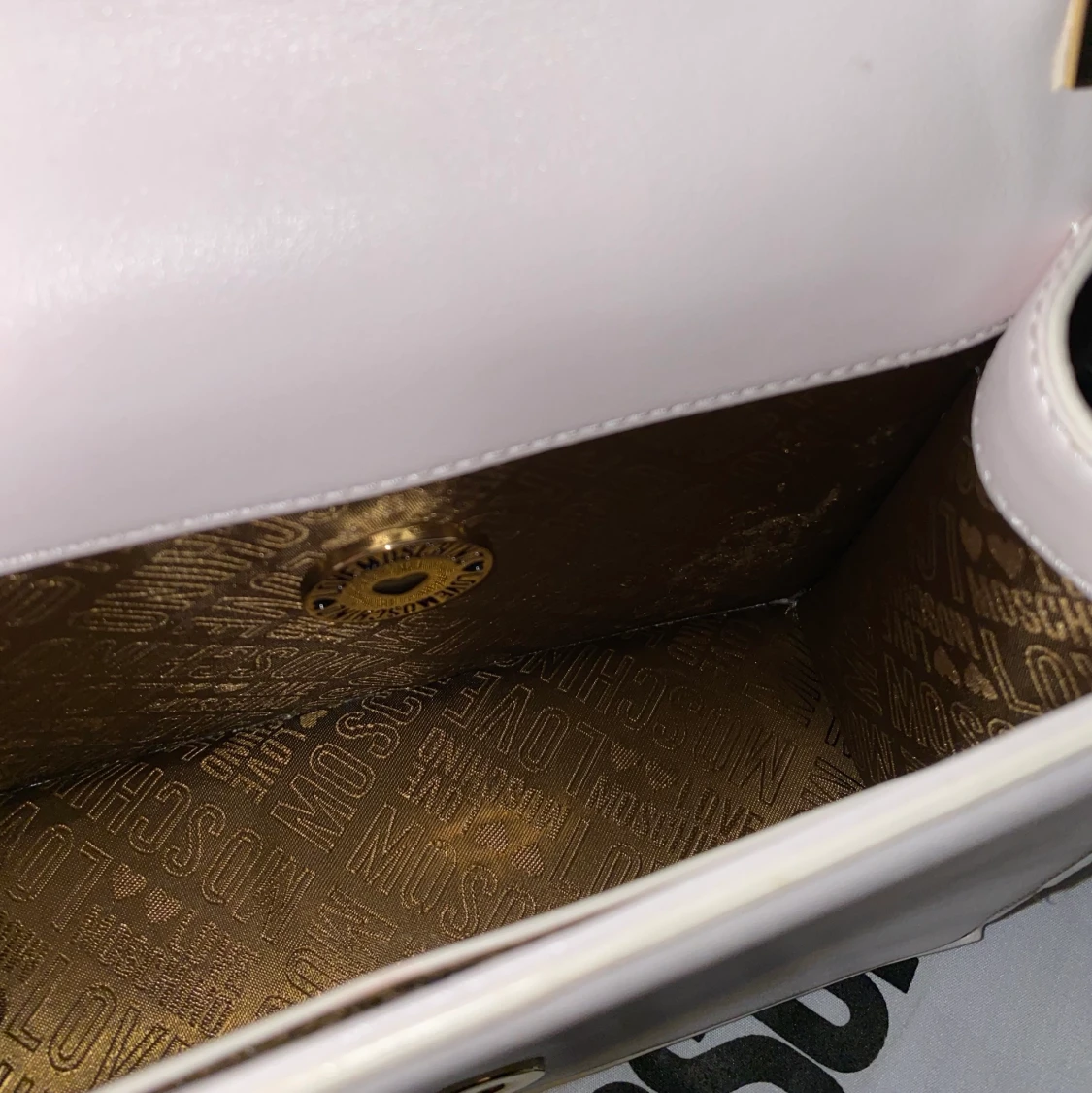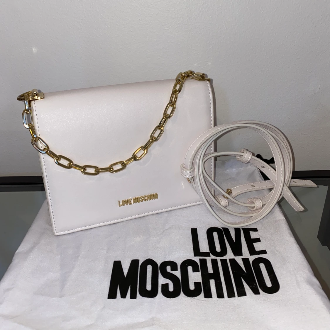 Hej, säljer en superfin Love moschino handväska som även funkar som en axelväska!🤩 Det finns fack på insidan som är designade för att ha sina kort i (bankkort m.m). Väskan är i toppskick!