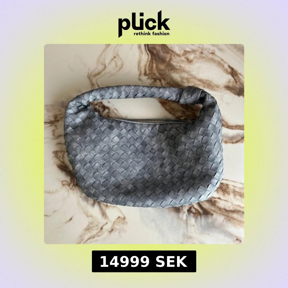 Säljer en snygg grå axelväska från Bottega Veneta i flätat skinn. Väskan har en chunky axelrem med knutdetalj och stängs med en guldig dragkedja. Perfekt storlek för det viktigaste och ger en lyxig vibe till din outfit.