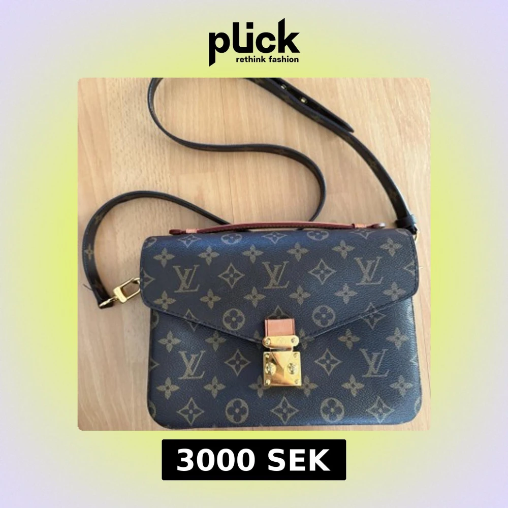 Säljer en klassisk LV axelväska i mörkbrunt skinn med ikoniskt monogrammönster och guldfärgade metalldetaljer. Väskan har justerbar axelrem, praktiskt handtag och flera fack inuti för smart organisering. Perfekt för dig som gillar lyxiga accessoarer med tidlös design.