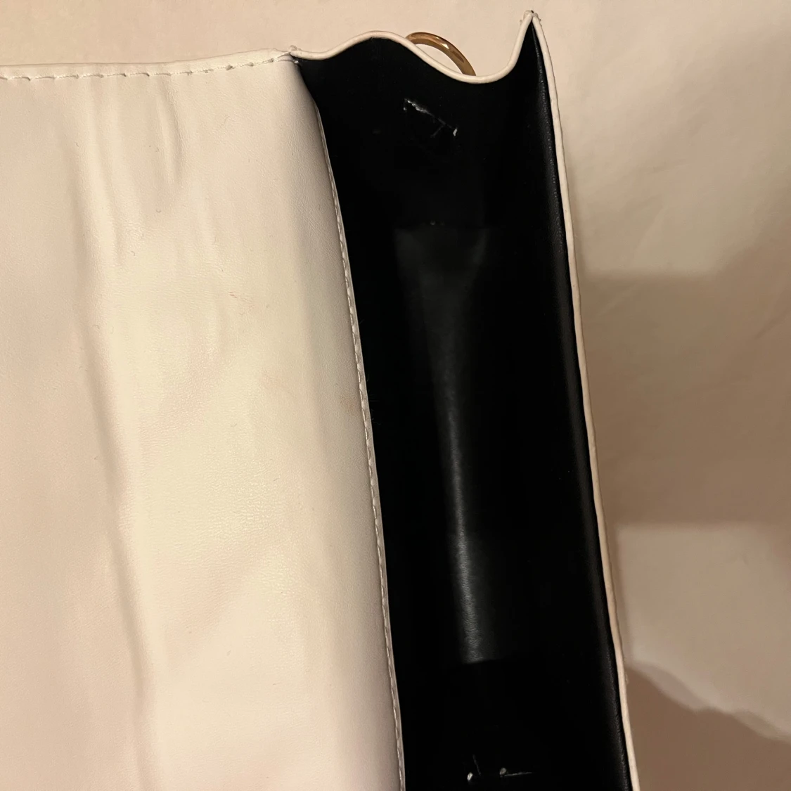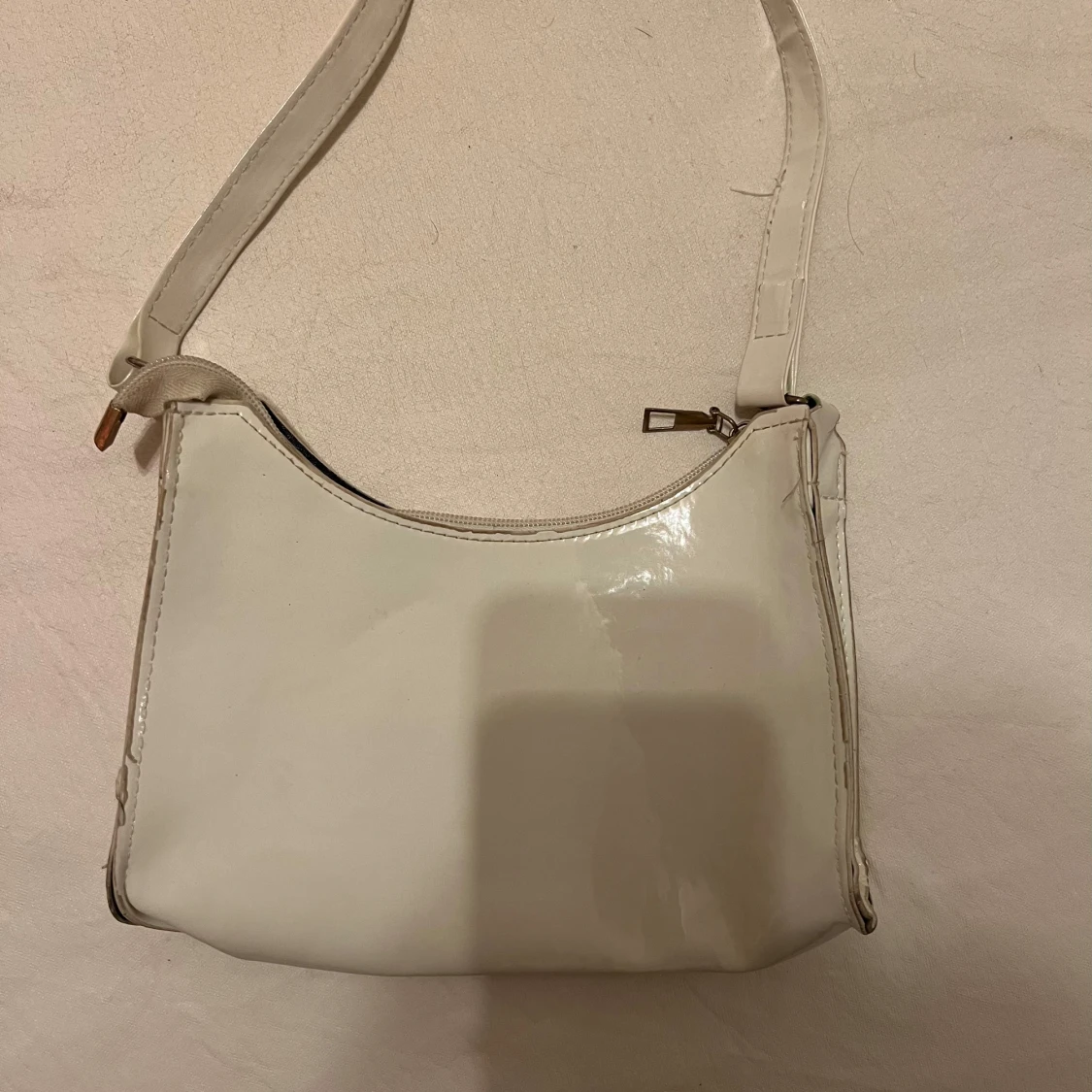 Säljer en stilren vit axelväska i syntetmaterial. Väskan har en praktisk dragkedja upptill och en enkel design som passar till många olika outfits. Perfekt för både vardag och fest! Säljs för 40