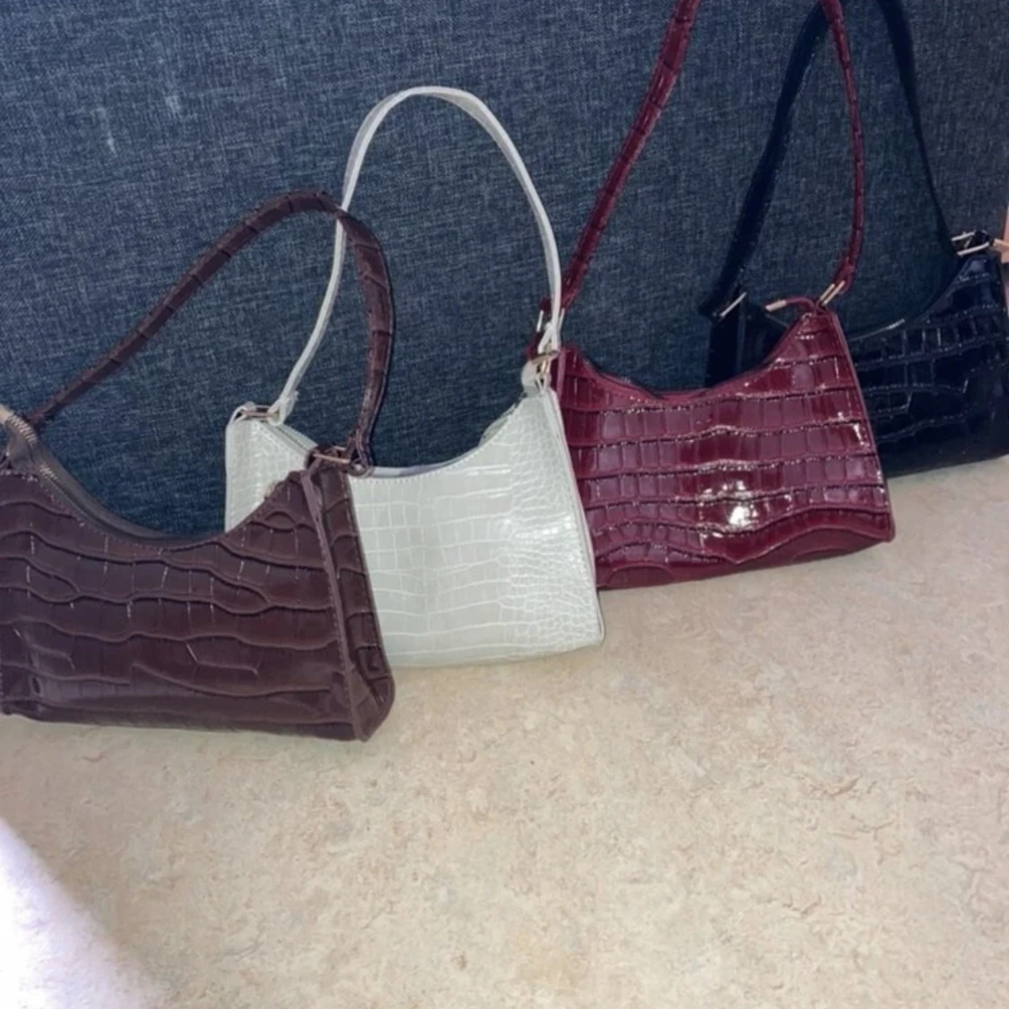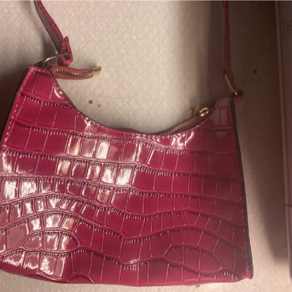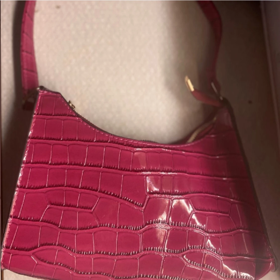 Gullig väska i cool färg i krokodilmönster, helt oanvänd! - väskan är praktisk, varken för liten eller stor med måtten: bredd 23 cm och längd 16cm. - pris kan diskuteras.