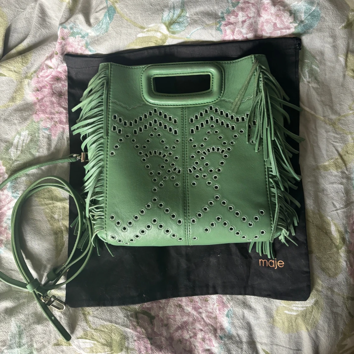 Säljer min fina Maje väska som jag köpte september 2023 på Zalando. Väskan är i den stora modellen. Nypris ligger på runt 2700kr💓💓 skriv vid frågor eller intresse. Vill inte sälja för under 950kr