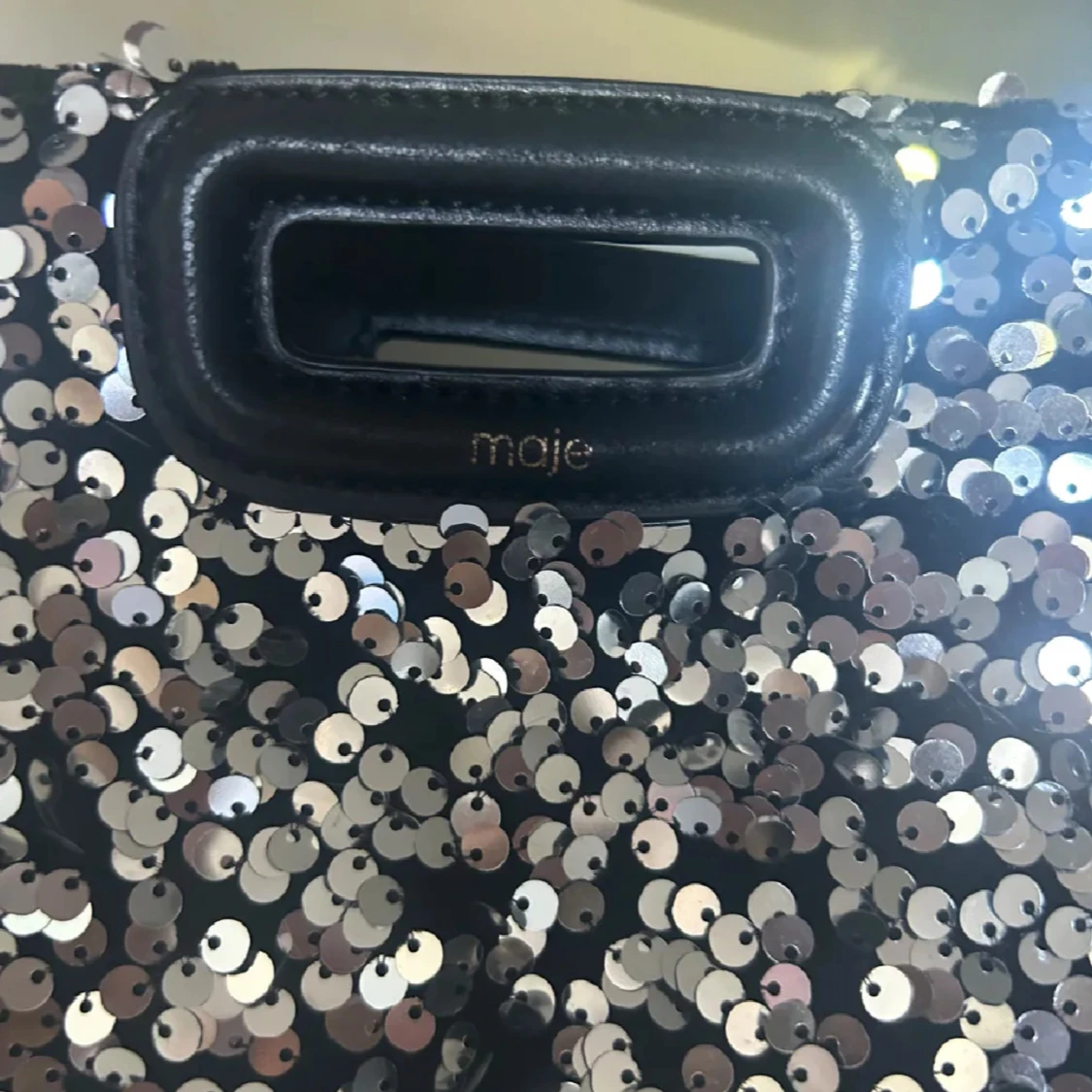 Maje väska med paljetter. Den är knappt andvändigt och köpte den ny i butik. Den är superfin att matcha med super många outfits🥰 pris kan alltid diskuteras! Nypriset är ca 4000kr säljer inte ns för hälften!!