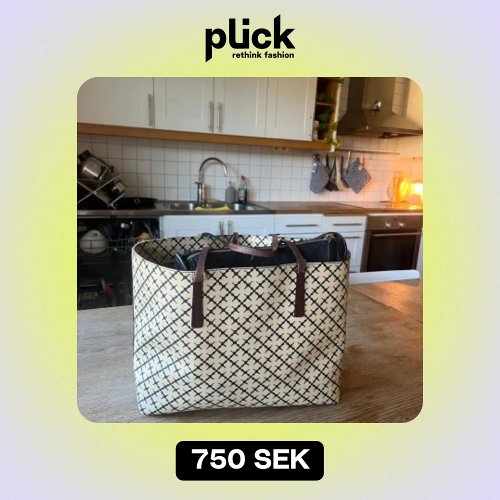 Säljer min Totebag från malene Birger väska i den ”normala”(mellan) storleken. I fint skick trots axelremsbanden då de tyvärr blir slitna på alla efter ett tag. Skulle säga att färgen är cremevit/gul ish med svart mönster, banden är mörkbruna. 🩷🩷