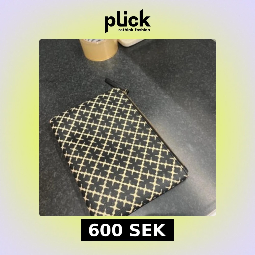 Snygg kuvertväska med ett stilrent svart och vitt mönster. Väskan har en praktisk dragkedja och är perfekt för att bära med sig det viktigaste. Passar både till vardags och festliga tillfällen. Och det är en clutch alltså inga band