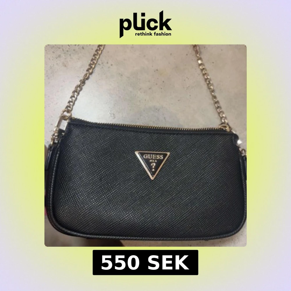 Snygg svart axelväska från Guess med en kedjerem och dragkedja. Väskan har en stilren design med det ikoniska Guess-logotypen i metall på framsidan. Perfekt för att ge din outfit en elegant touch.