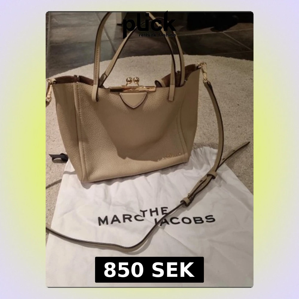 Marc Jacobs beige Mini The Kiss Lock Tote Superfin som ny, perfekt storlek passar med en liten laptop i lagom liten och lagom stor. Ca 33 cm bred 20 cm hög