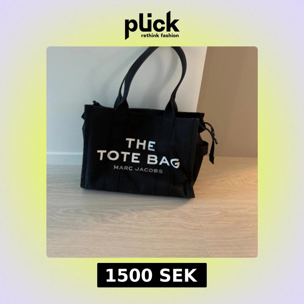 Snygg svart tote bag från Marc Jacobs med vit logga framtill. Väskan är rymlig med dubbla handtag och tillverkad i slitstark bomull.