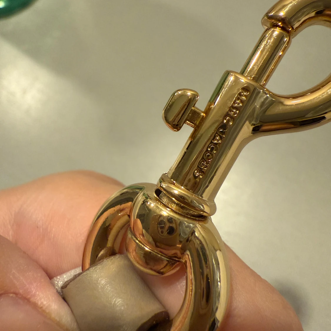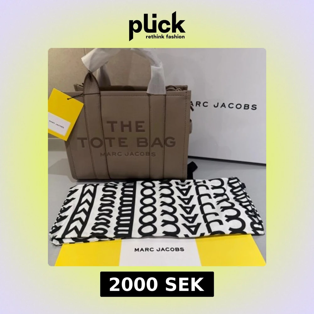 Snygg beige tote bag från Marc Jacobs i äkta skinn med präglad logga framtill. Väskan har robusta handtag, guldfärgade metalldetaljer och dragkedja upptill. Insidan är fodrad med mörkt tyg och har en innerficka. Perfekt storlek för dina essentials.