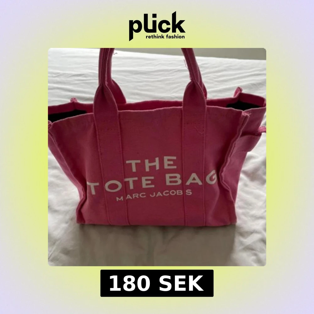 Säljer en rosa tote bag från Marc Jacobs med tydlig vit logga framtill. Väskan är i canvasmaterial, har två handtag och dragkedja upptill. Rymlig insida med innerficka, perfekt för att bära med sig allt man behöver. Snygg och trendig accessoar för alla tillfällen.