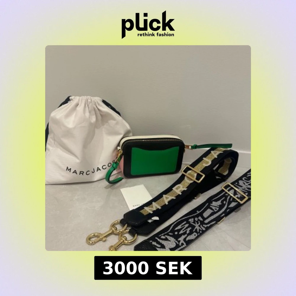 Snygg axelväska från Marc Jacobs i en cool kombination av grönt och svart. Väskan har en justerbar axelrem med guldiga detaljer och en praktisk dragkedja. Perfekt för att ge din outfit en färgklick!