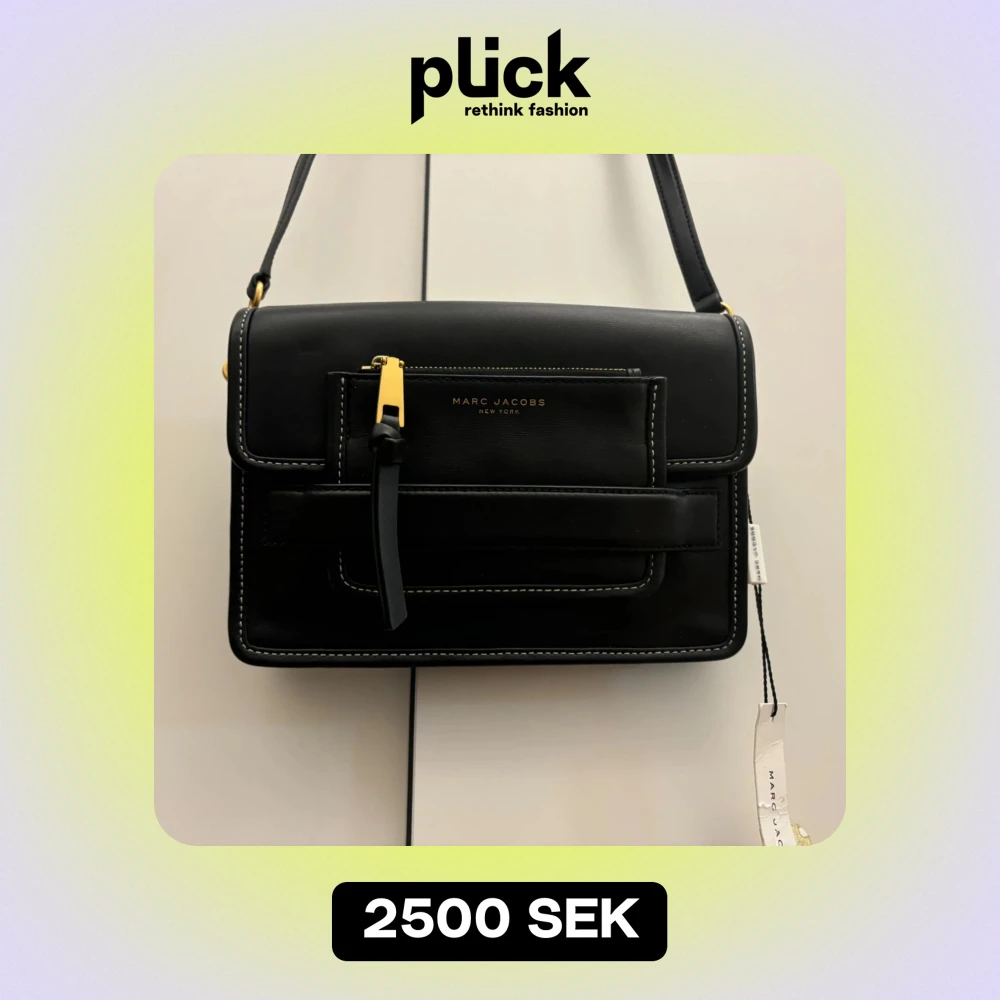 Snygg svart axelväska från Marc Jacobs i skinn med gulddetaljer. Väskan har en justerbar axelrem och en praktisk ficka framtill med dragkedja. Perfekt för både vardag och fest!