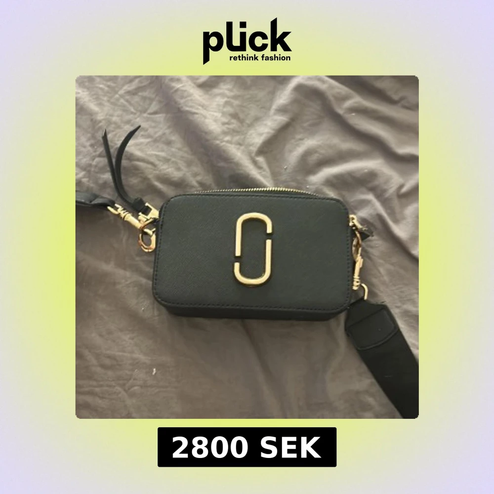 Snygg svart axelväska från Marc Jacobs med guldiga detaljer och bred justerbar axelrem. Väskan har två dragkedjor upptill, stilren rektangulär form och ikonisk logga framtill. Tillverkad i skinn med struktur och har en praktisk ficka på baksidan.
