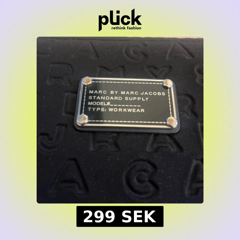 Snygg svart datorväska från Marc by Marc Jacobs med präglad logotyp över hela väskan och en metallbricka framtill. Väskan har dragkedja och är tillverkad i syntetmaterial. Perfekt för att bära din laptop med stil.