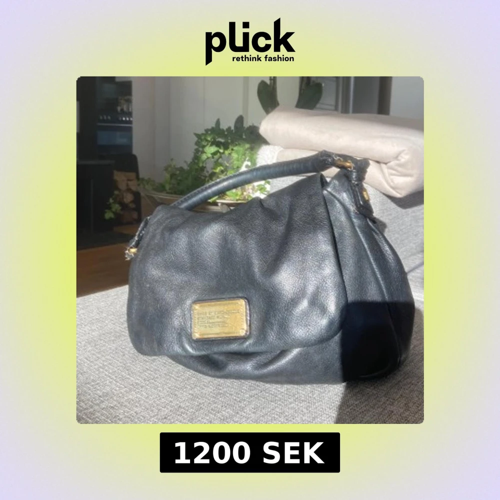 Snygg svart skinnväska från Marc Jacobs med guldfärgade detaljer och en praktisk dragkedja. Pris kan diskuteras ❣️