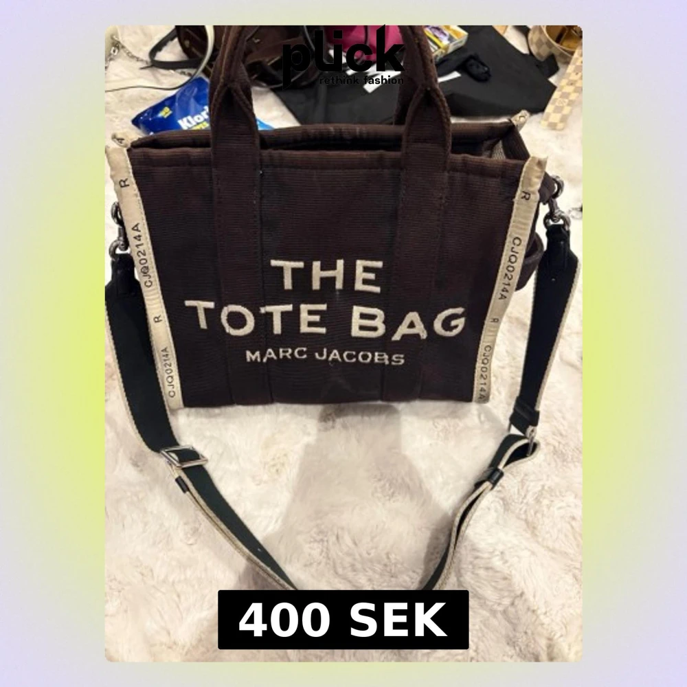 Säljer en brun tote bag från Marc Jacobs i kraftig bomull med vita detaljer och bred axelrem. Väskan har tydlig logga framtill, dragkedja upptill och flera innerfack för smart förvaring. Väskan har slitage på sidorna och insida men fungerar som vanligt men därav lägre pris.