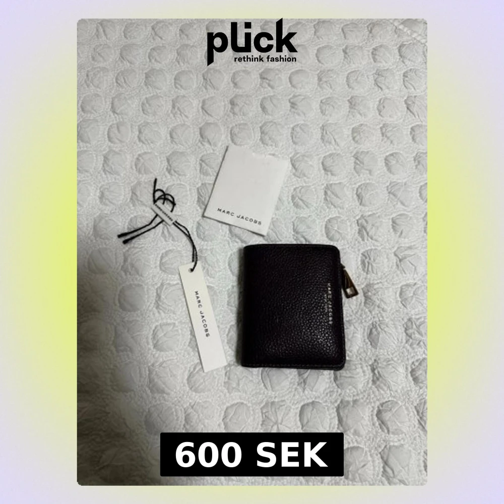 Snygg mörklila plånbok från Marc Jacobs i äkta skinn. Plånboken har flera kortfack, ett myntfack med dragkedja i guld och tryckknappsstängning. Stilren design med Marc Jacobs-logga på framsidan. Perfekt storlek för fickan eller väskan.