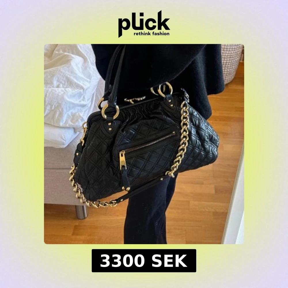En av Marc Jacobs mest eftertraktade modeller! Den klassiska Stam Bag i svart quiltat lammläder med guldfärgade detaljer är en tidlös investering som aldrig går ur stil. Finns på Marc Jacobs sida för 19200kr i re-edition. Den har en mjukt rundad silhuett med den ikoniska “kiss lock”-stängningen upptill och en elegant avtagbar axelrem i metallkedja med läderdetaljer. De dubbla handtagen gör att väskan lika gärna kan bäras i handen som på axeln. Skriv för mer info🤍Kan skickas eller hämtas!